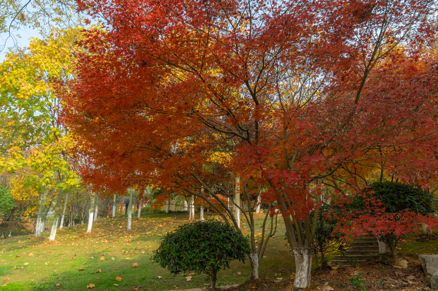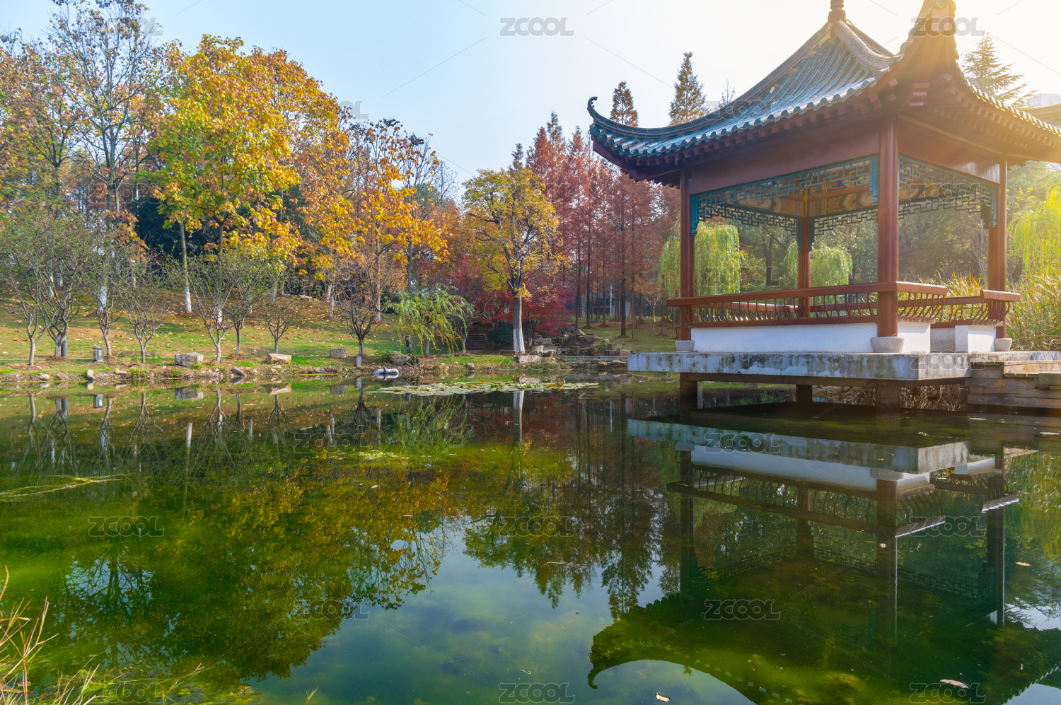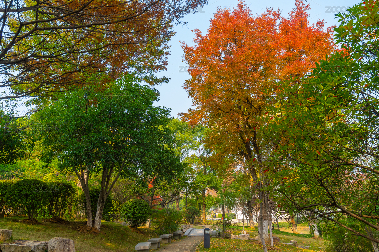 湖北武漢公園深秋秋景