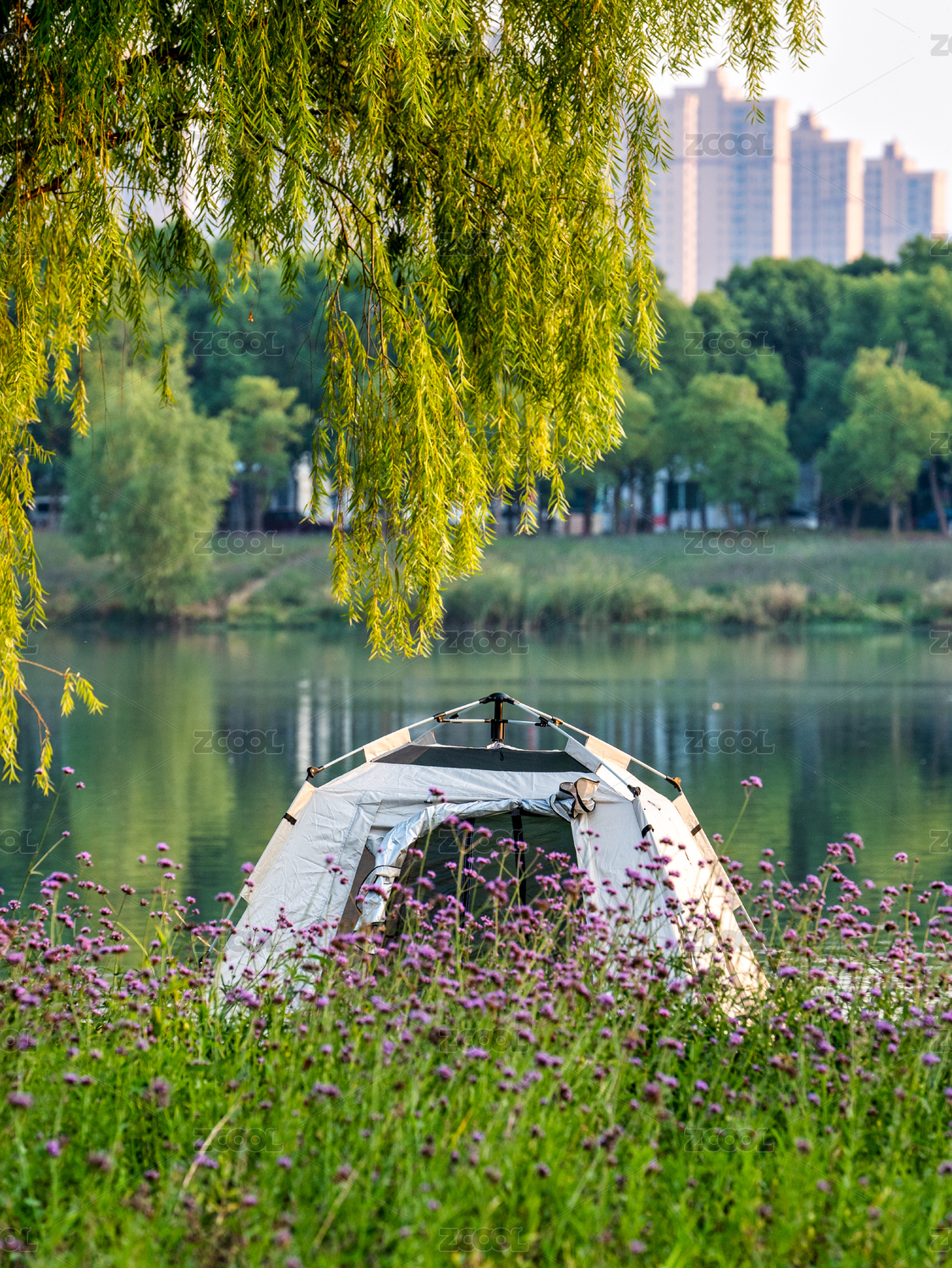武漢公園湖邊露營(yíng)