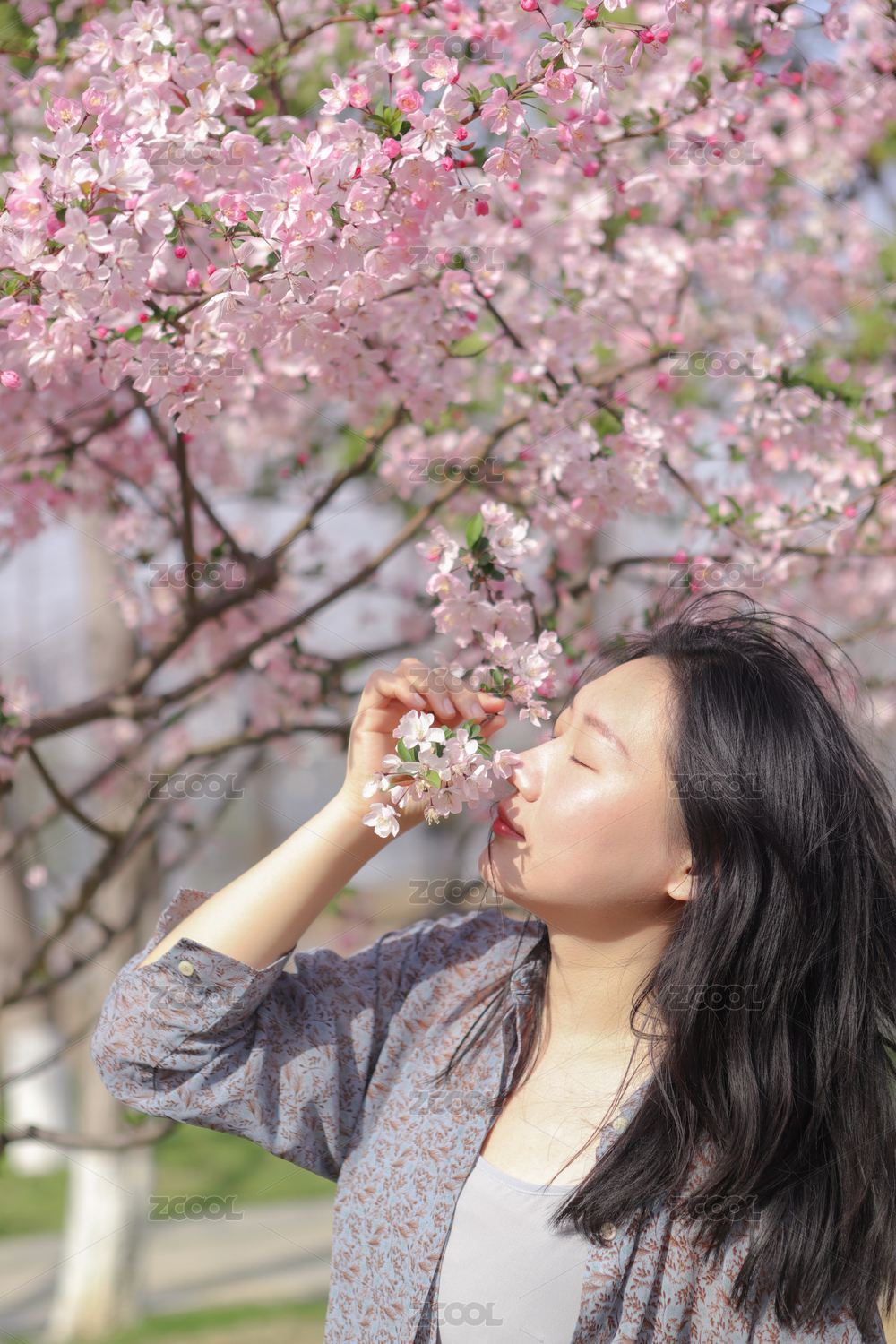 武漢公園里的姑娘聞花香