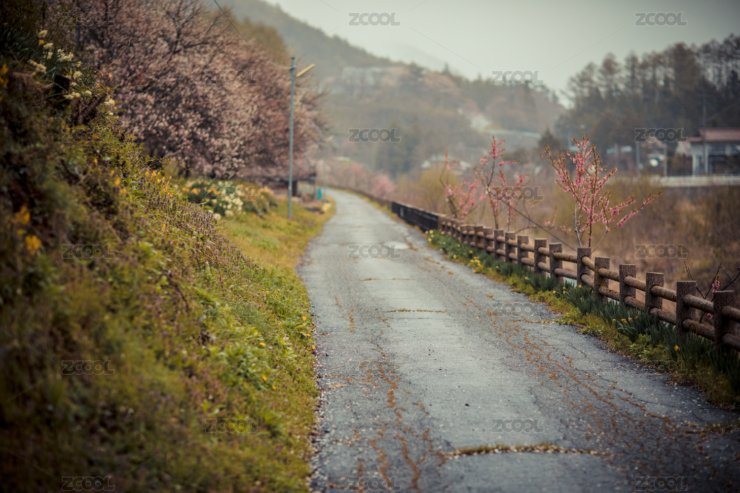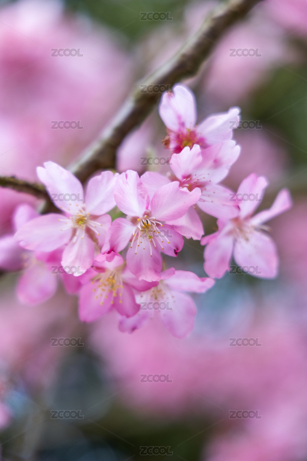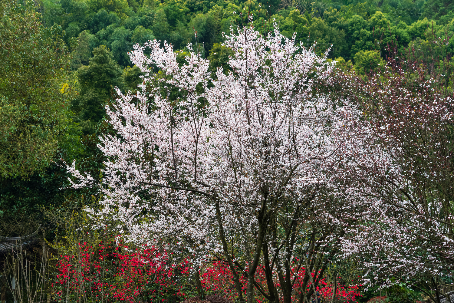春天開(kāi)滿花的櫻樹(shù)和桃樹(shù)