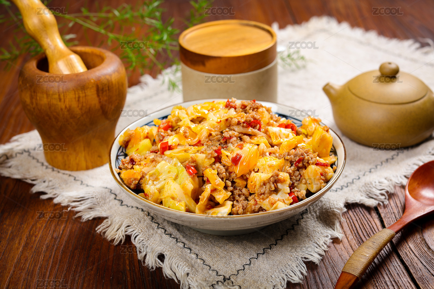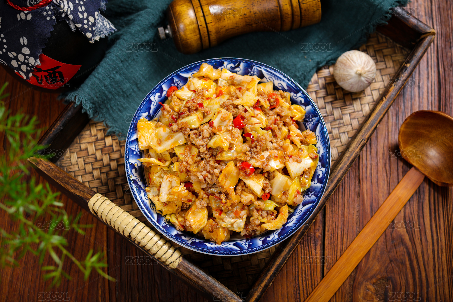 青花瓷碗里的泡菜泡包包菜包心菜咸菜