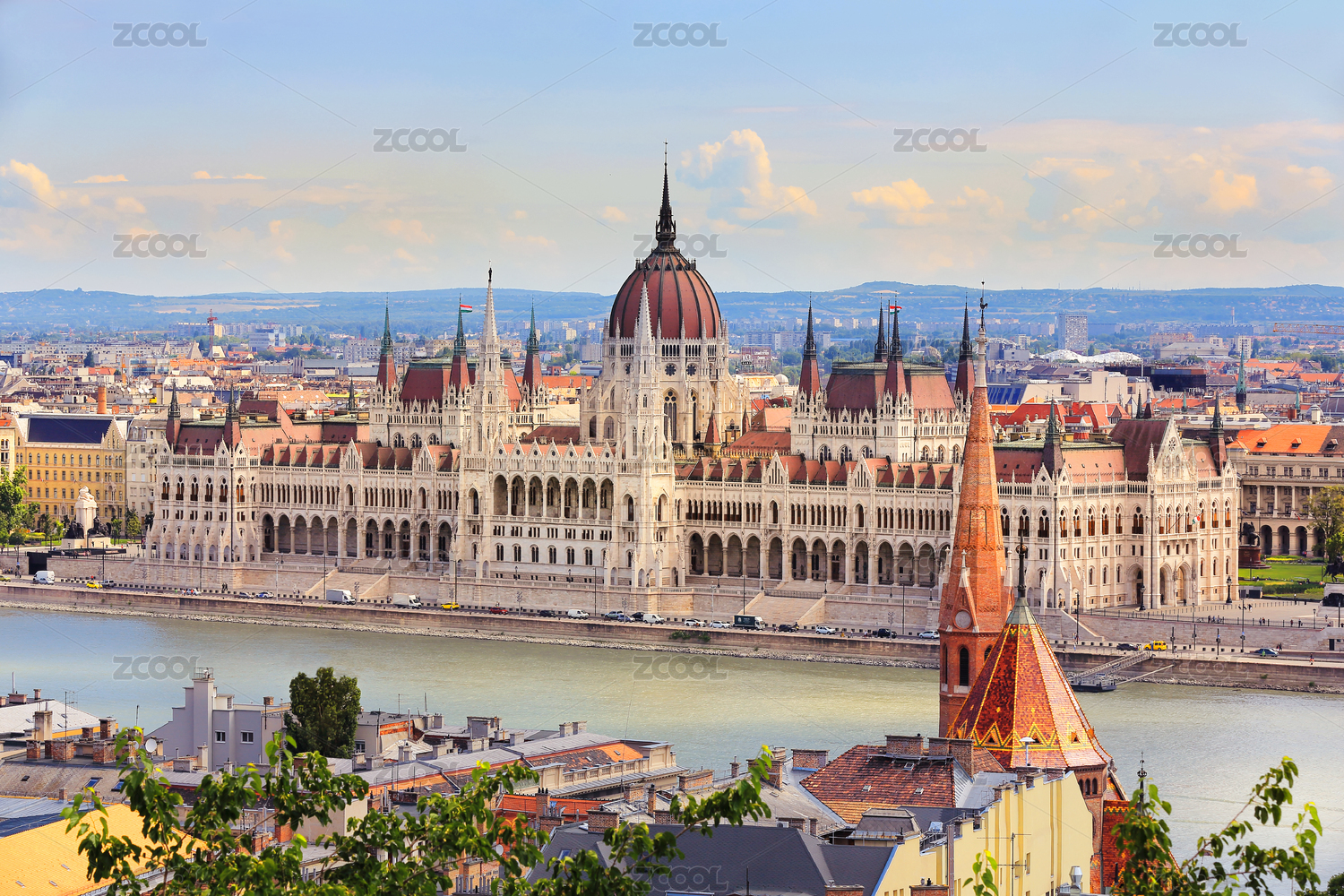 匈牙利布達(dá)佩斯多瑙河對(duì)遠(yuǎn)眺國(guó)會(huì)大廈