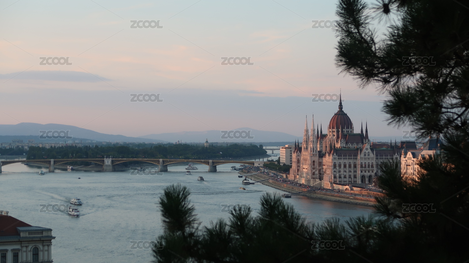 傍晚布達(dá)佩斯多瑙河對(duì)岸遠(yuǎn)眺匈牙利國(guó)會(huì)大廈