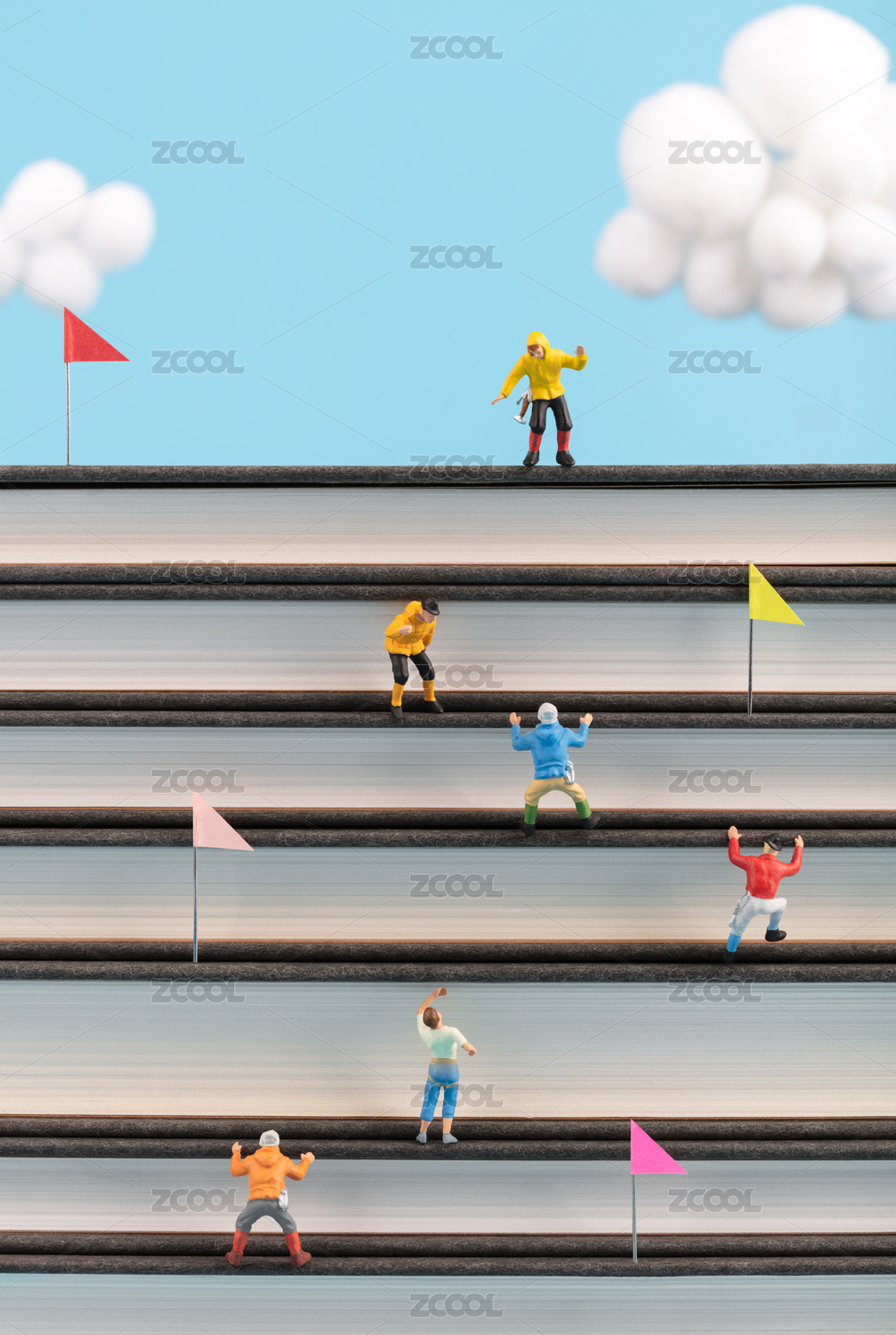 在書本上做拓展訓(xùn)練徒手攀巖的小人競爭