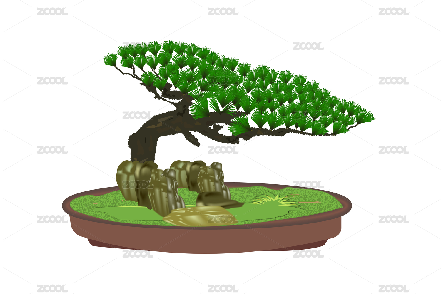矢量圖盆景盆栽,一盆松樹(shù)五針?biāo)?/div>