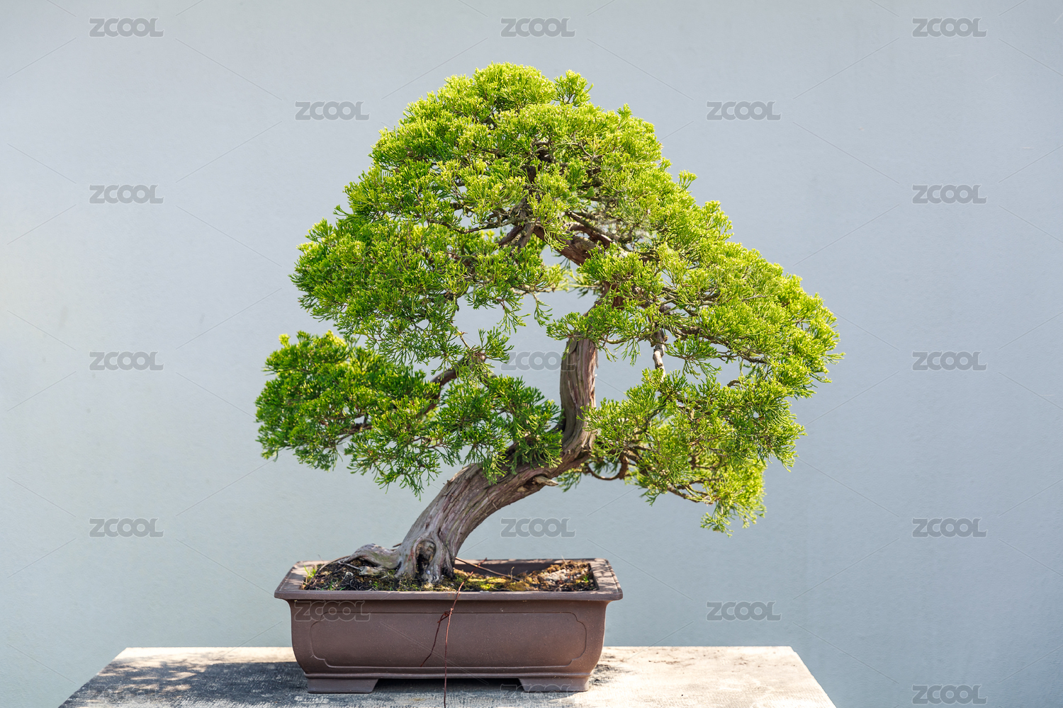 中國(guó)盆景藝術(shù),大板松樹(shù)叢盆景在白色背景