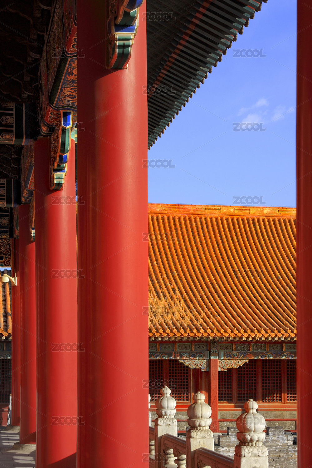 中國北京故宮午門里的隔扇門與朱漆檐柱
