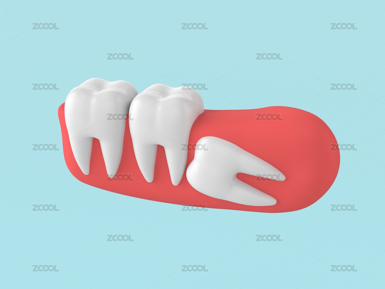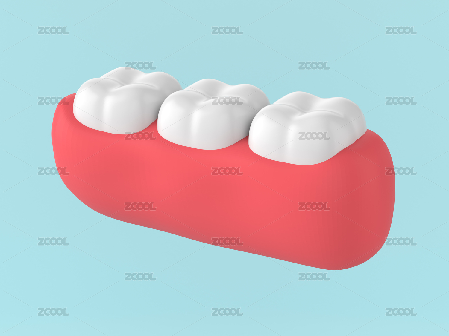 立體3d三顆牙齒牙齦模型插畫