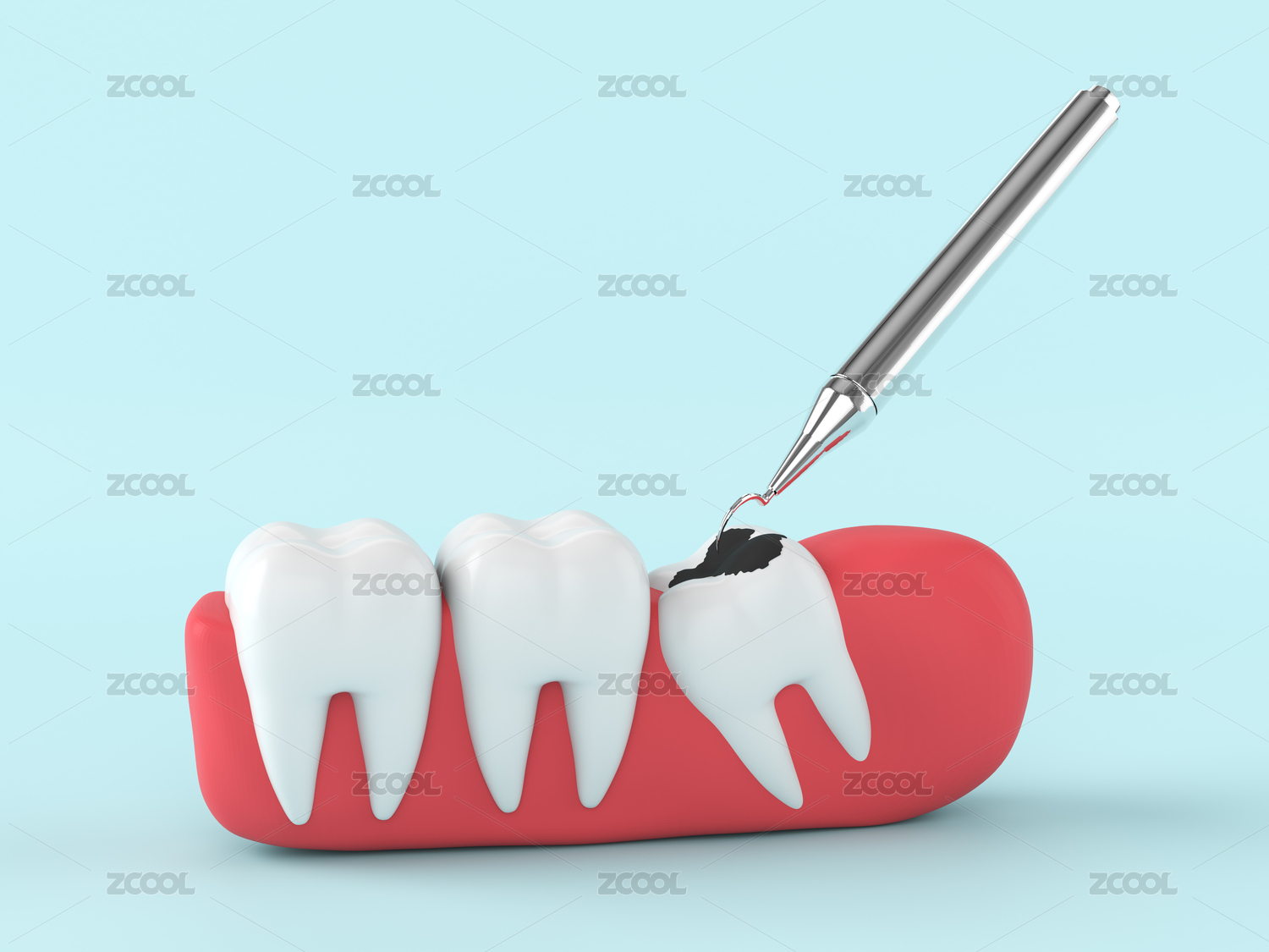 立體3d修復(fù)蛀牙牙齒模型插畫