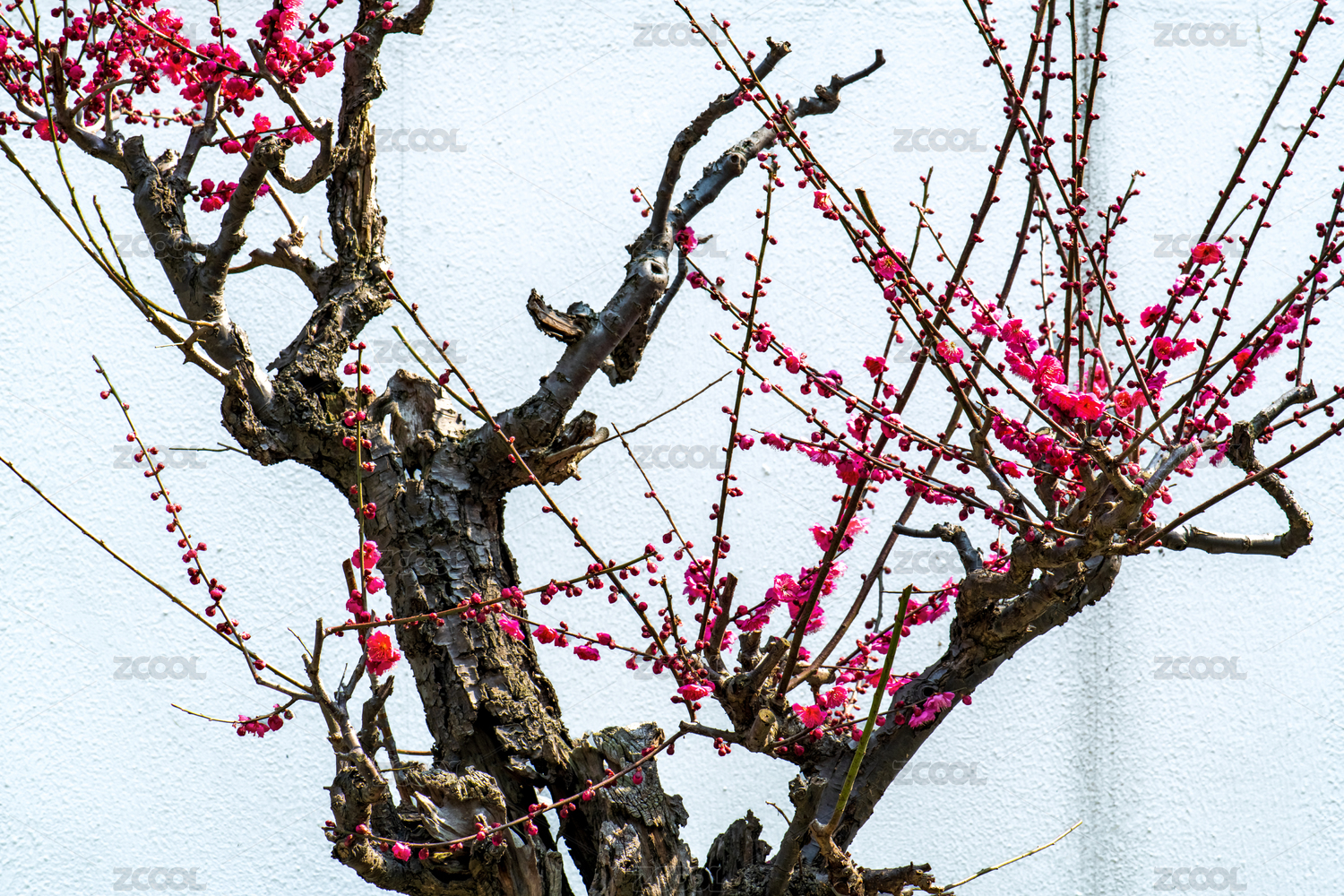 早春盛開(kāi)的老樁粉紅色梅花
