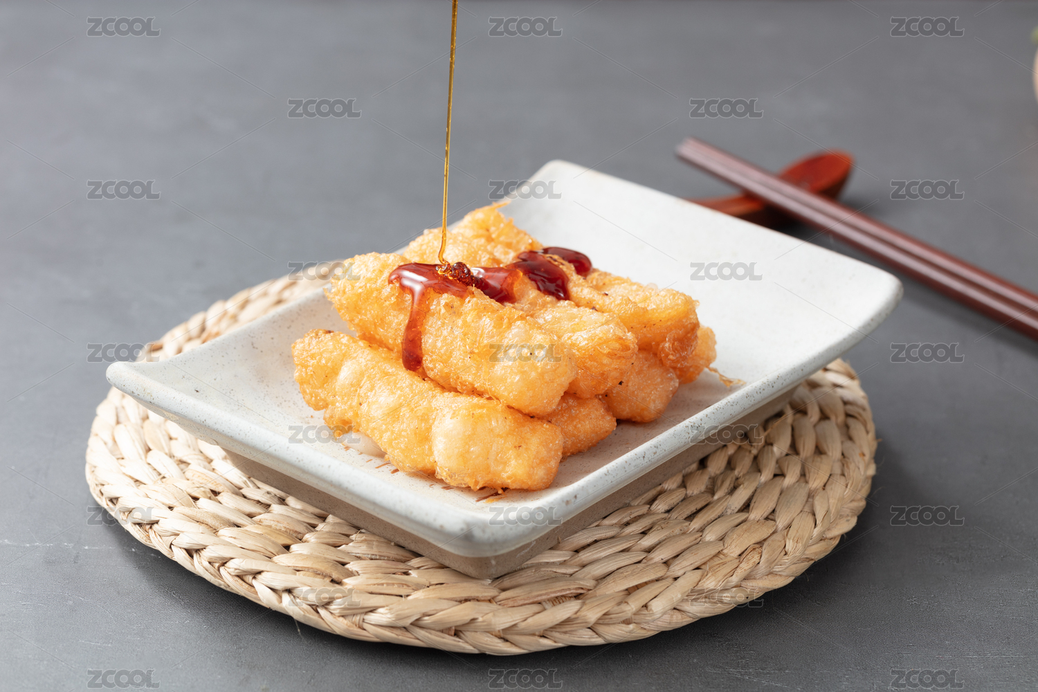 碗里的小吃油炸紅糖糍粑條糯米粑
