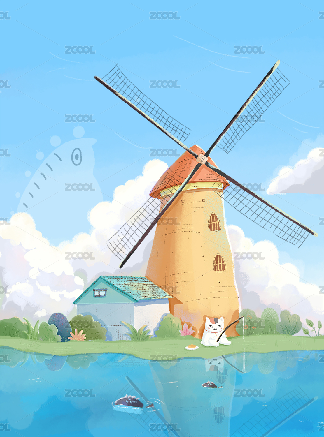 夜晚中的貓 黑夜里的精靈奇幻插畫