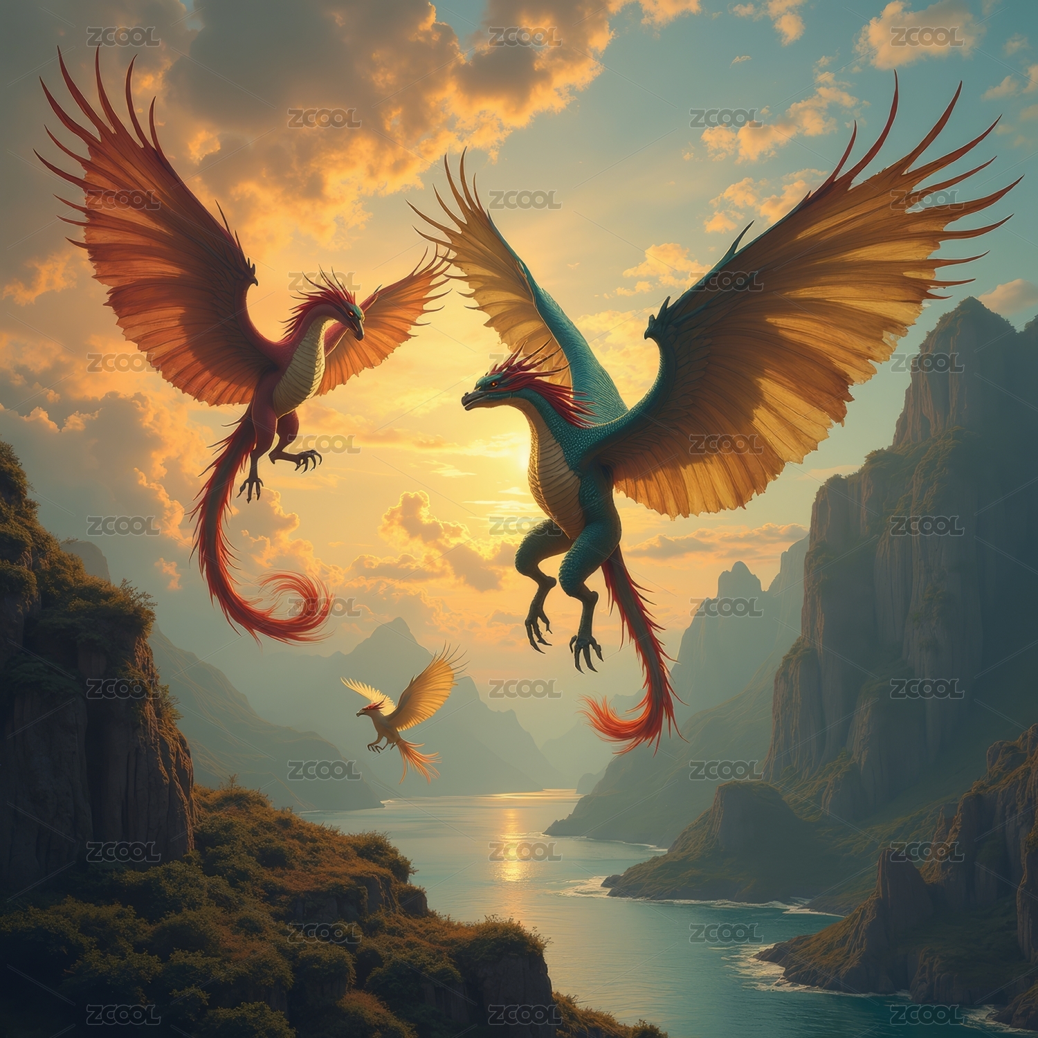 3d渲染奇幻可愛龍寶寶森林中的魔法精靈