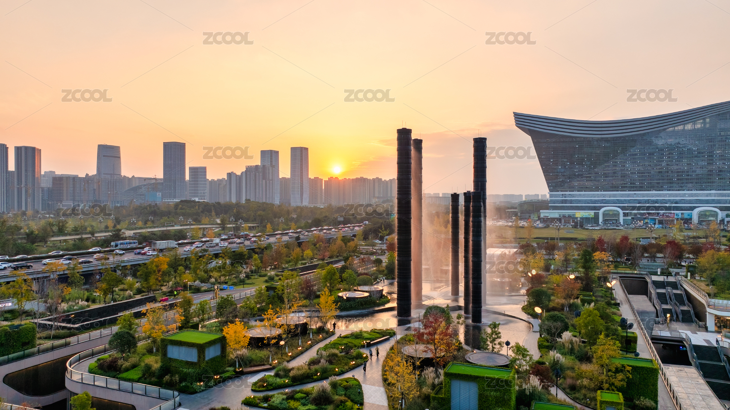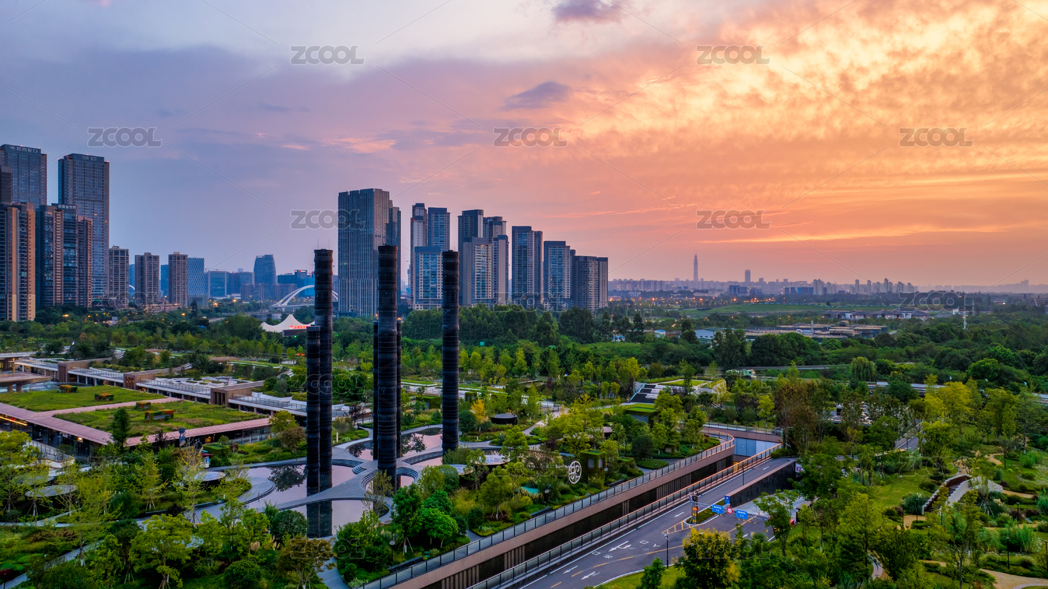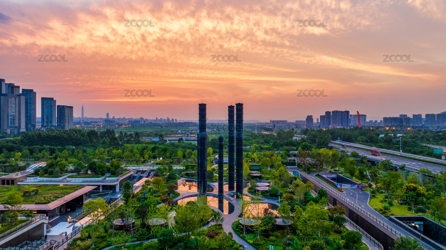 成都地標(biāo)SKP商場生機(jī)之塔與高新區(qū)落日