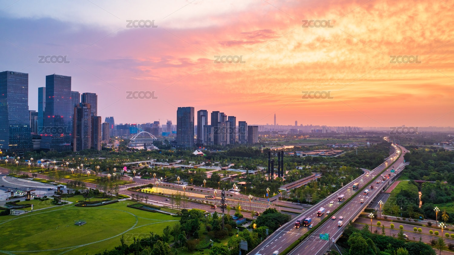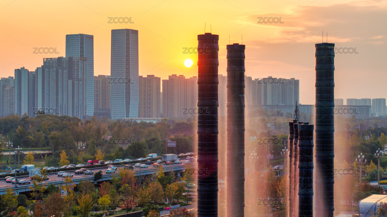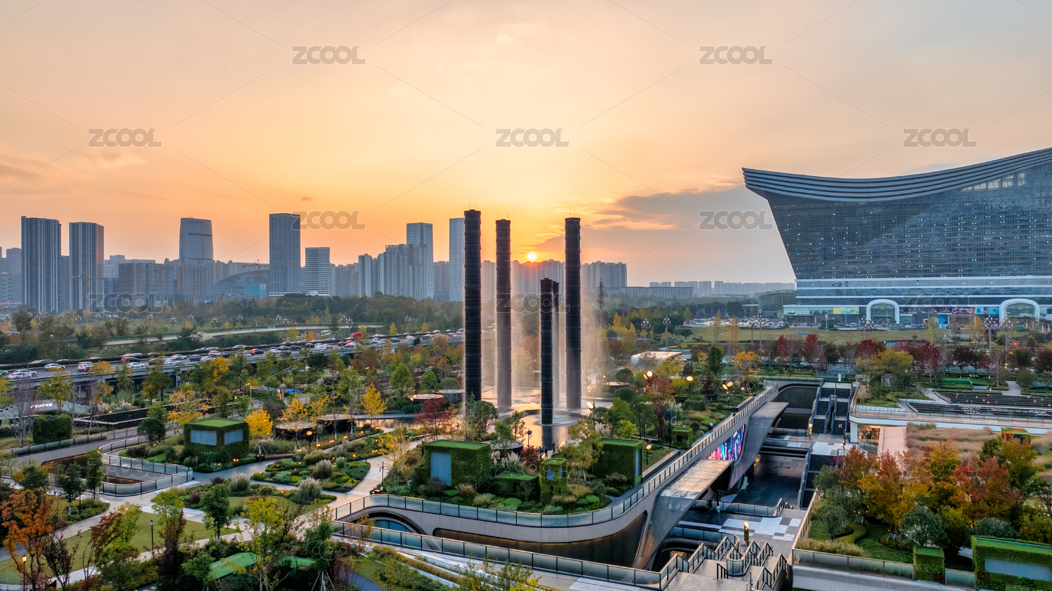 成都地標(biāo)SKP商場生機(jī)之塔與高新區(qū)落日