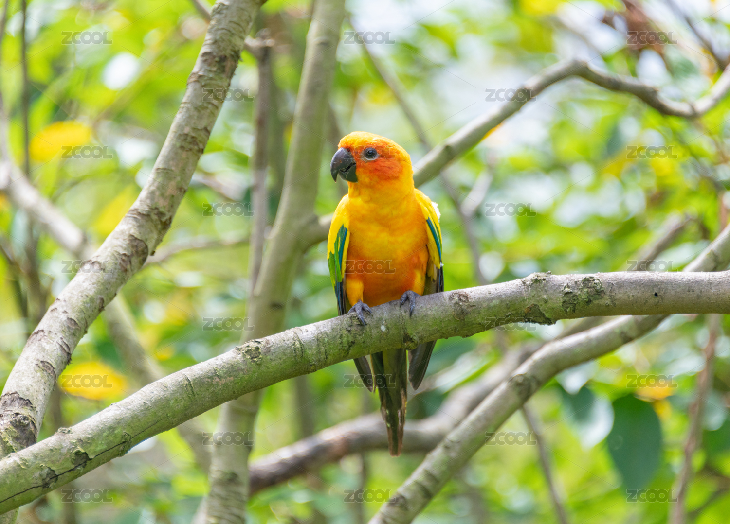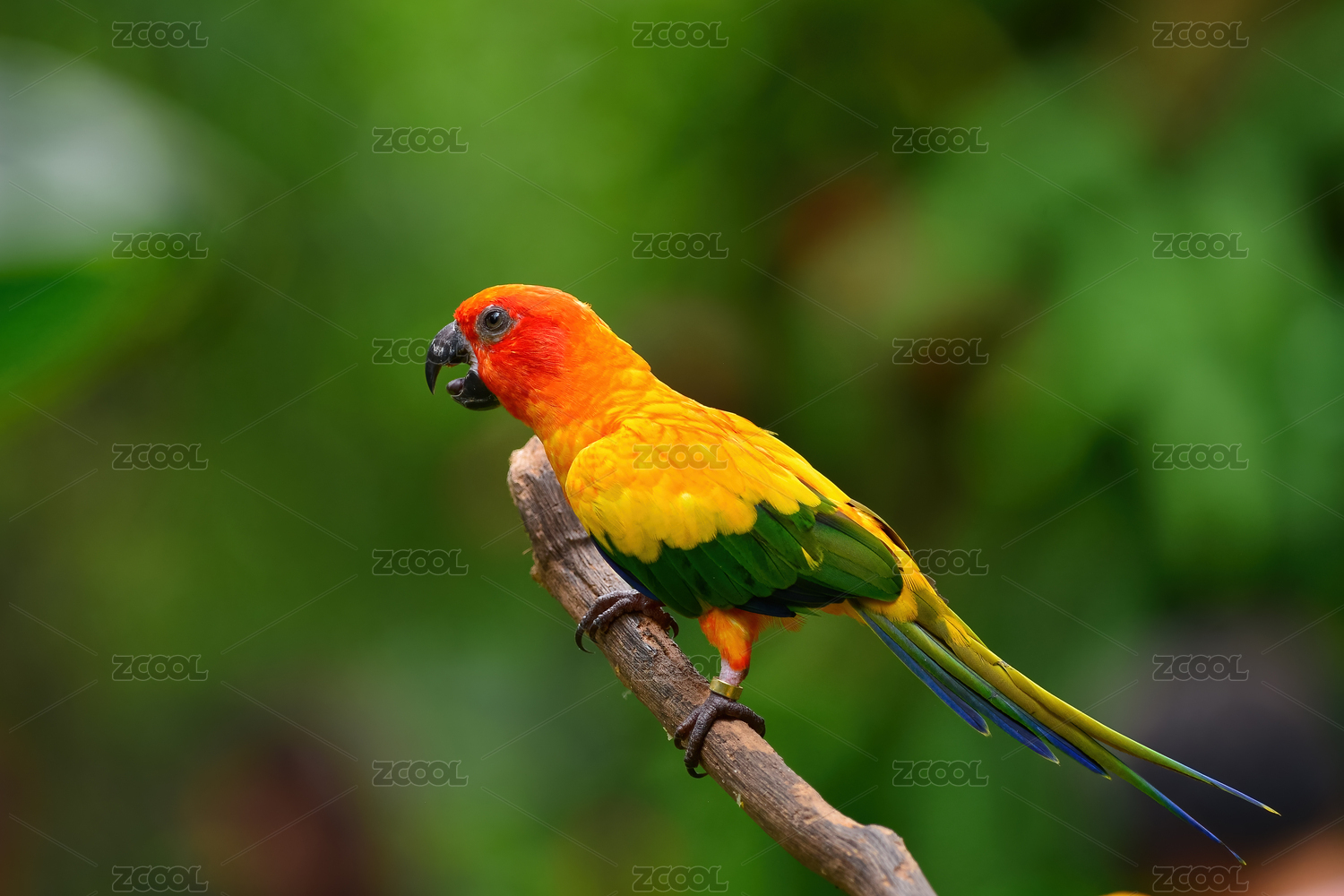 一只太陽錐尾鸚鵡站立在樹枝條上