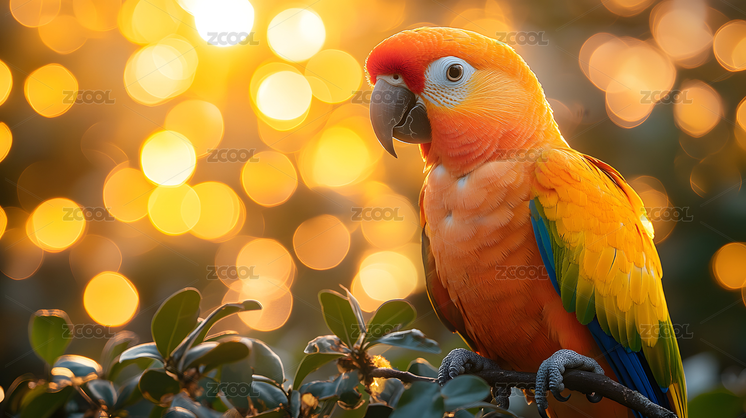 金黃陽光下美麗的太陽錐尾鸚鵡