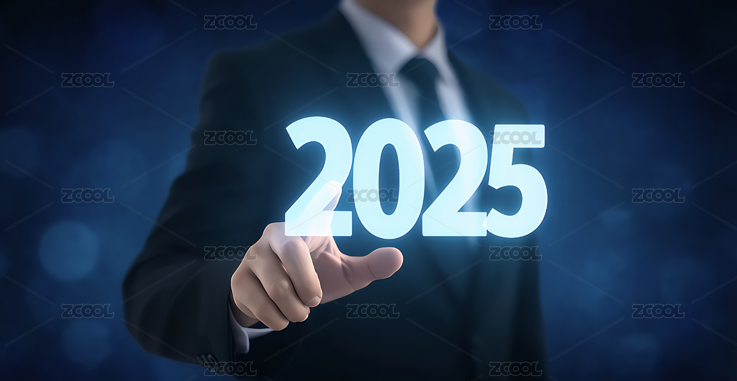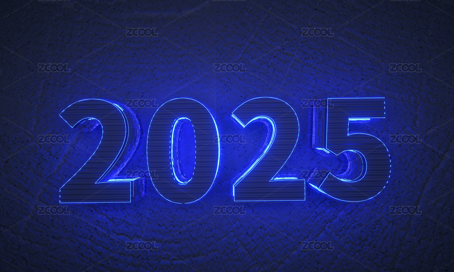 黑色背景上的2025藍(lán)色發(fā)光字體