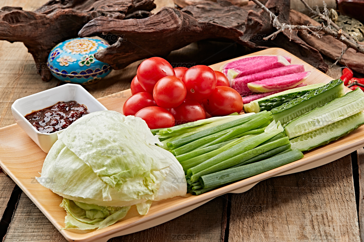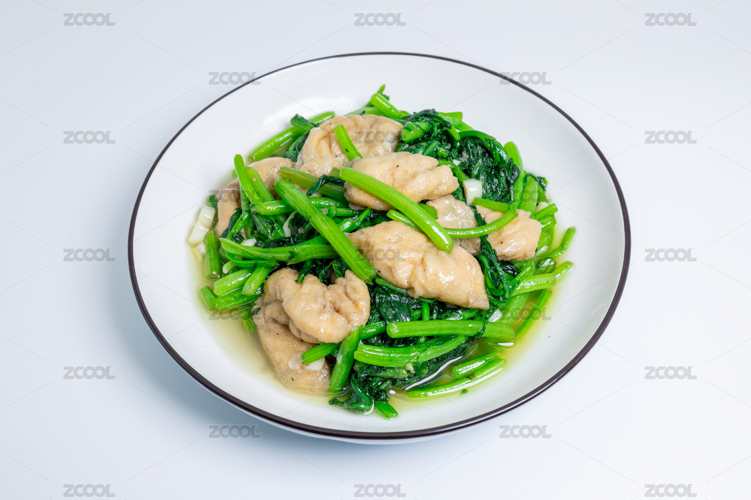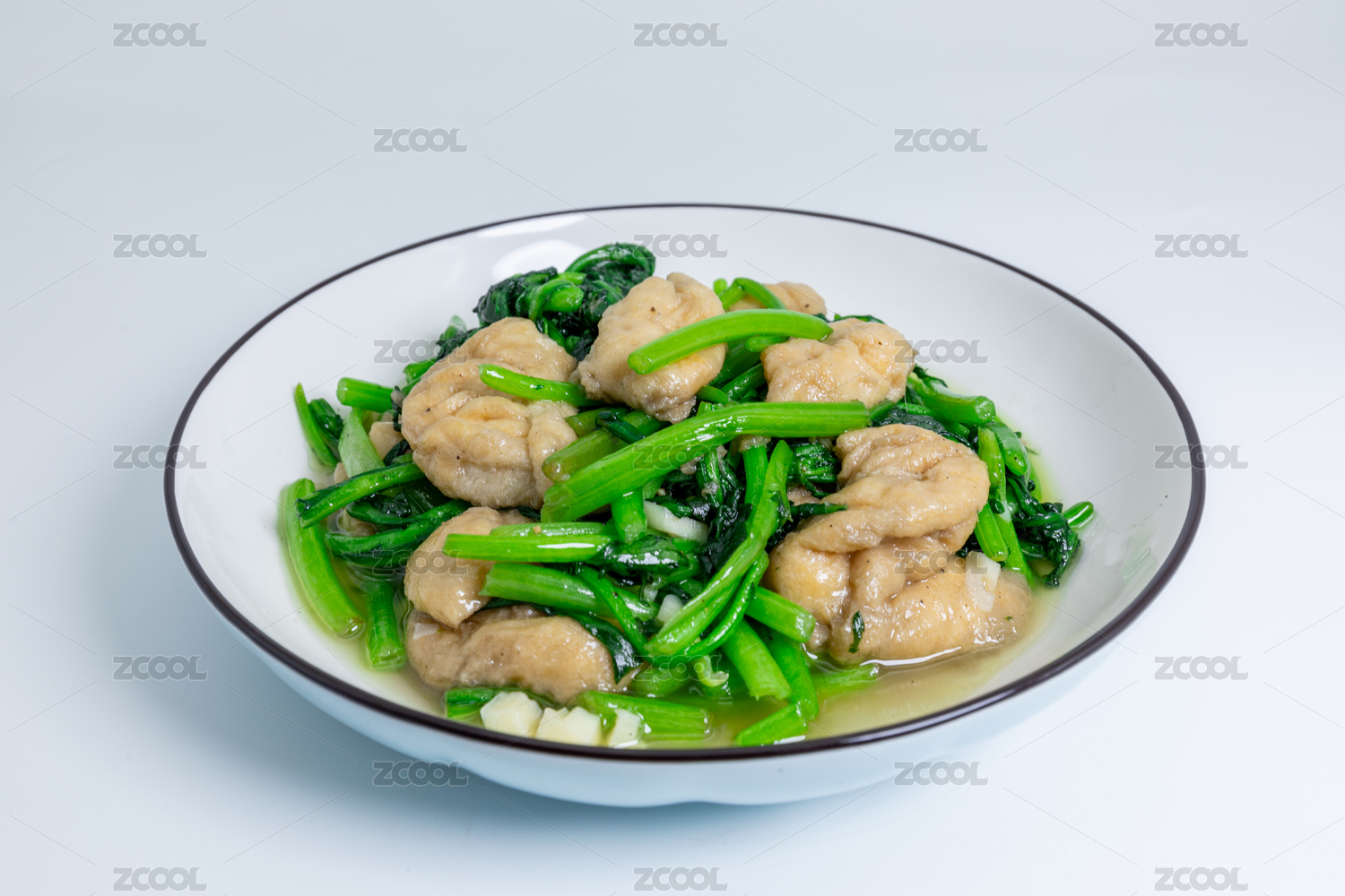 白色瓷盤裝的澆汁時蔬山藥大拉皮