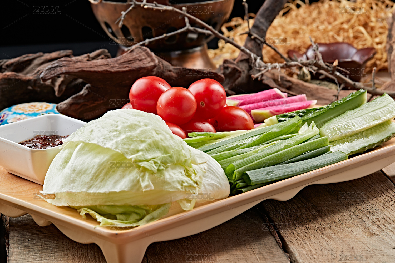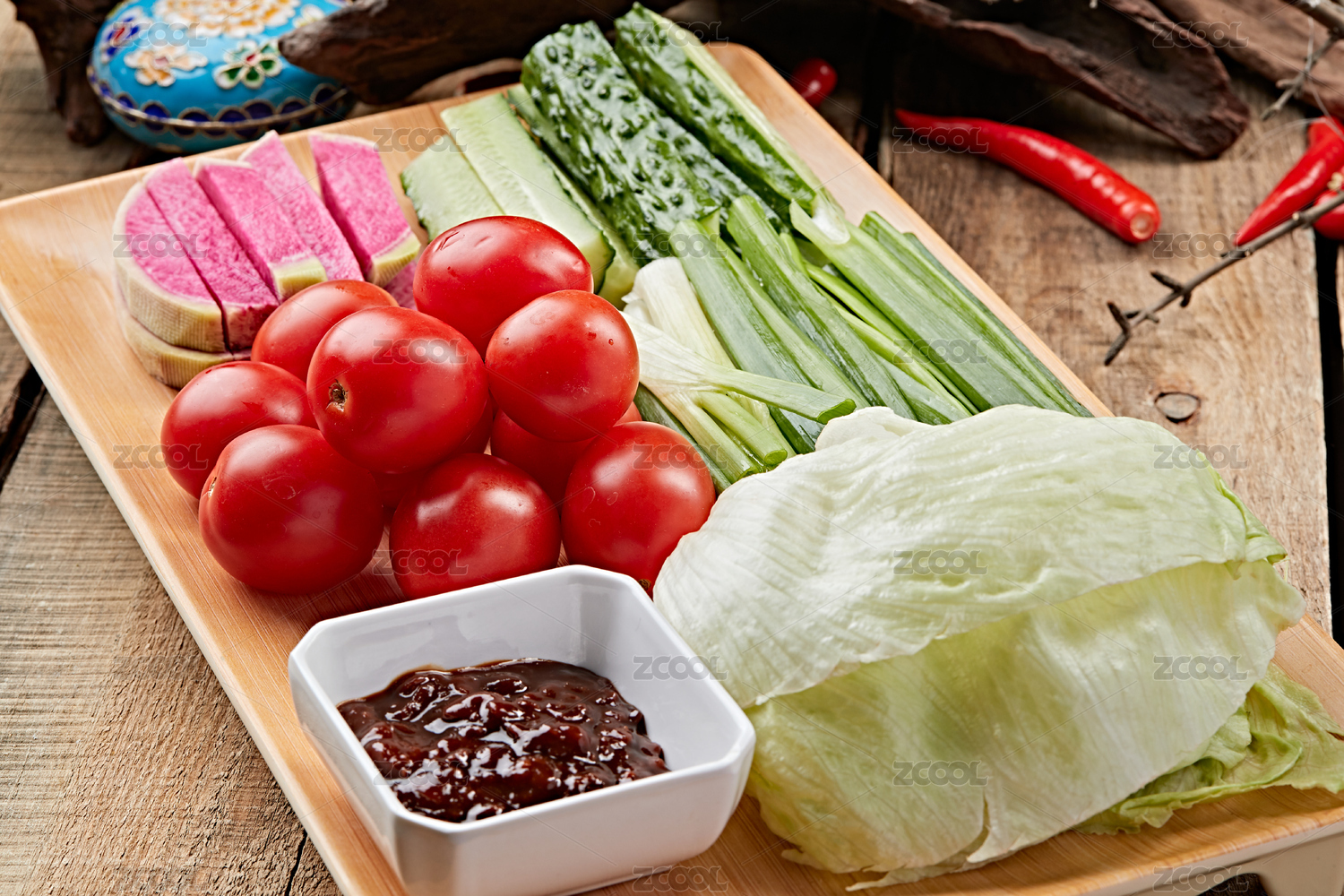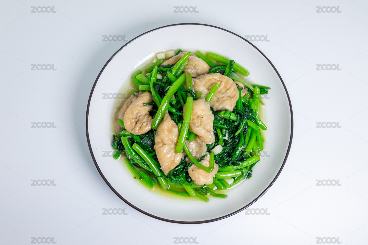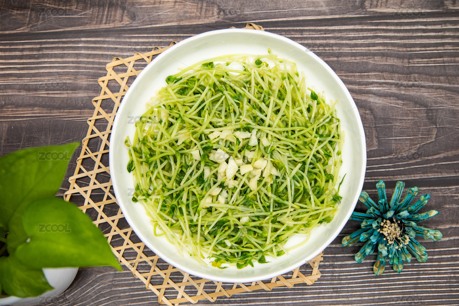 白色瓷盤裝的澆汁時蔬山藥大拉皮