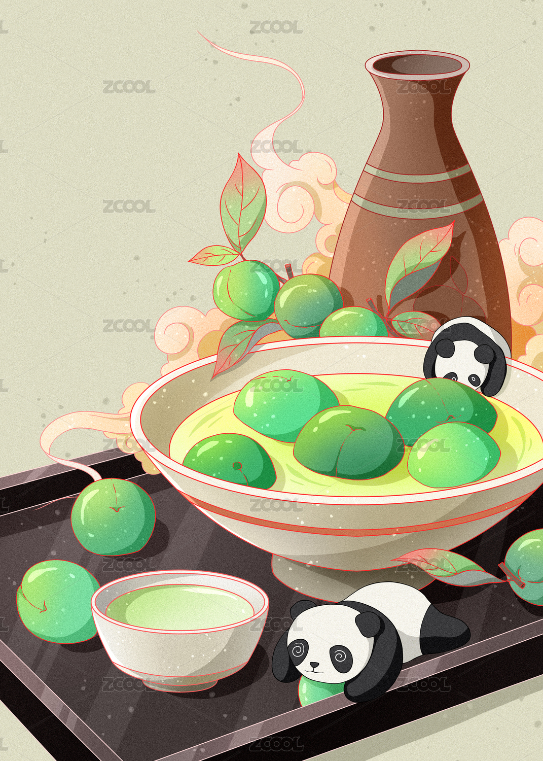 國潮風(fēng)二十四節(jié)氣傳統(tǒng)食物芒種青梅酒
