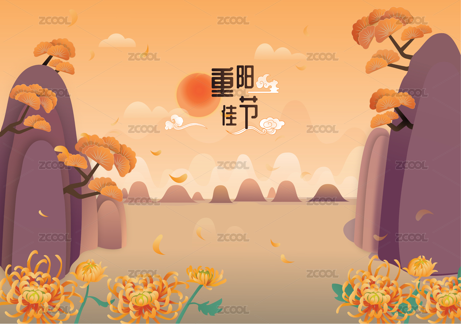 中國(guó)傳統(tǒng)節(jié)日農(nóng)歷九月初九重陽(yáng)節(jié)矢量插畫