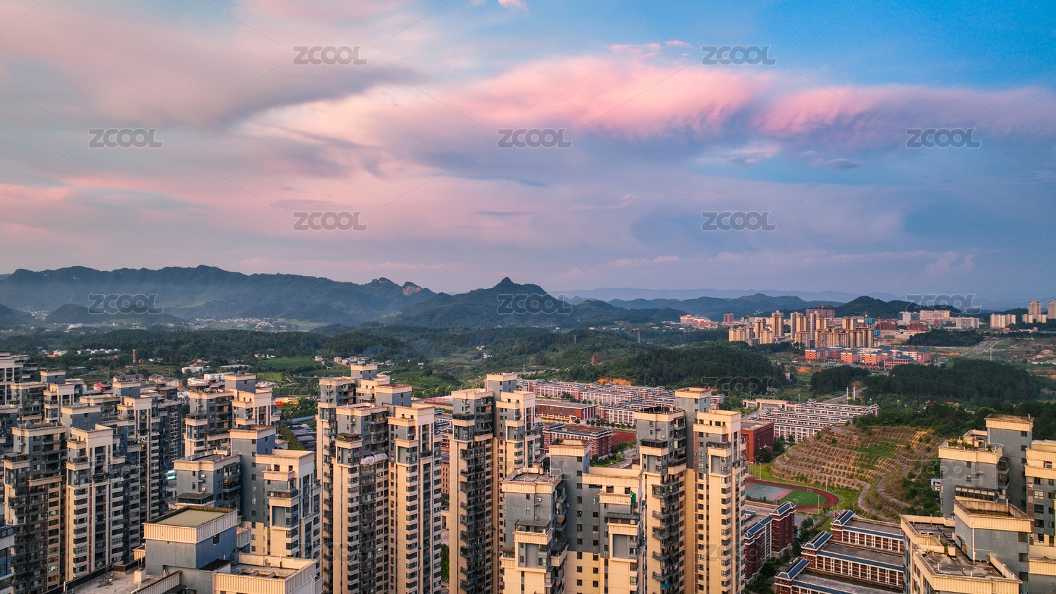 貴州省遵義市新蒲新區(qū),城市上空的晚霞