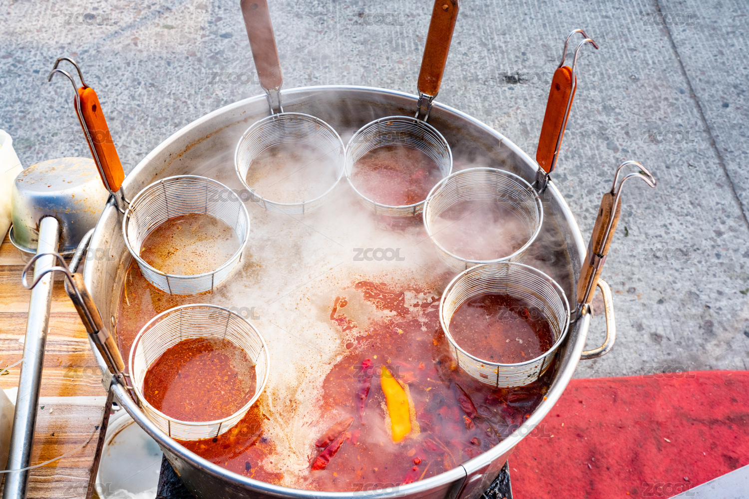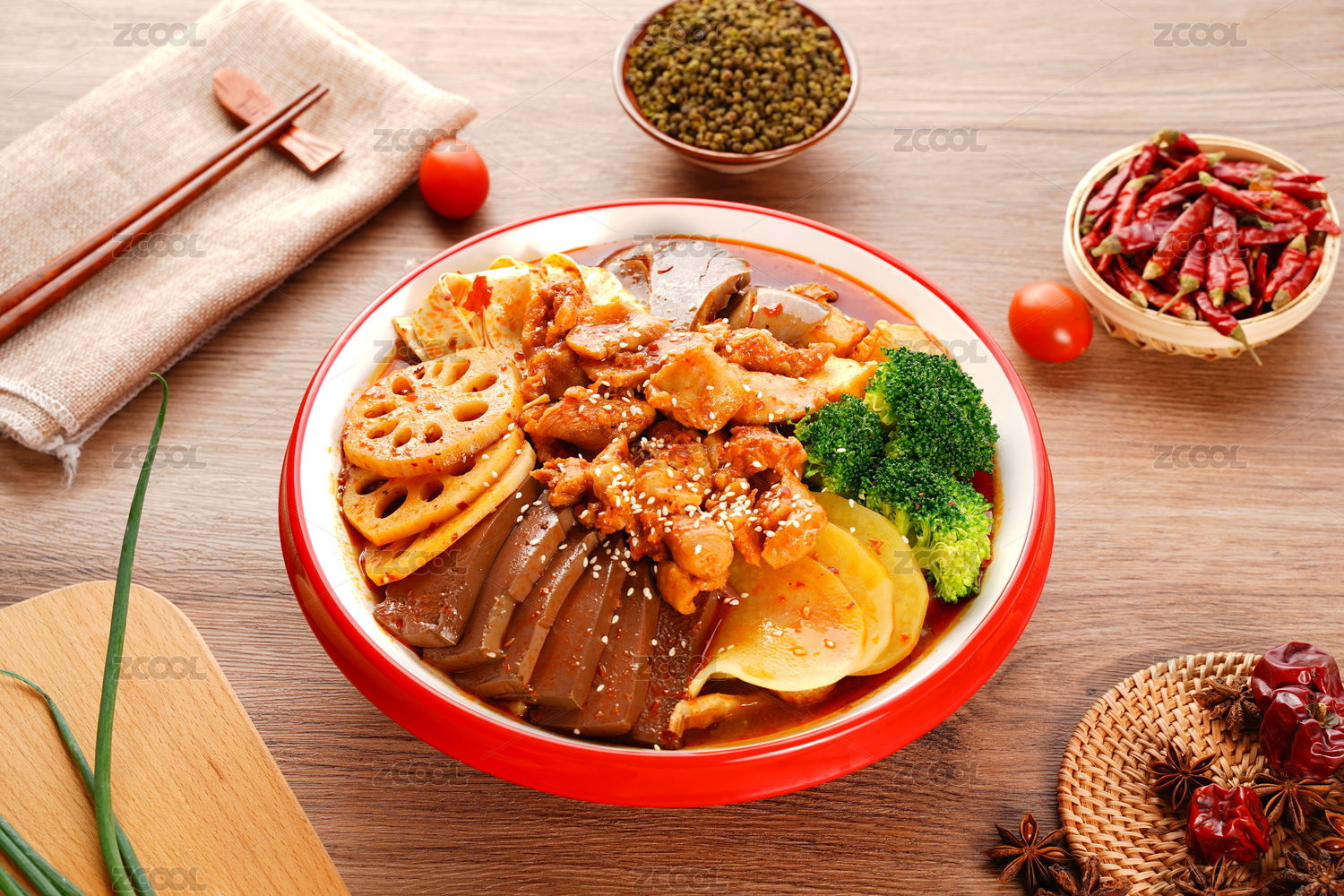 木紋背景麻辣燙菜品