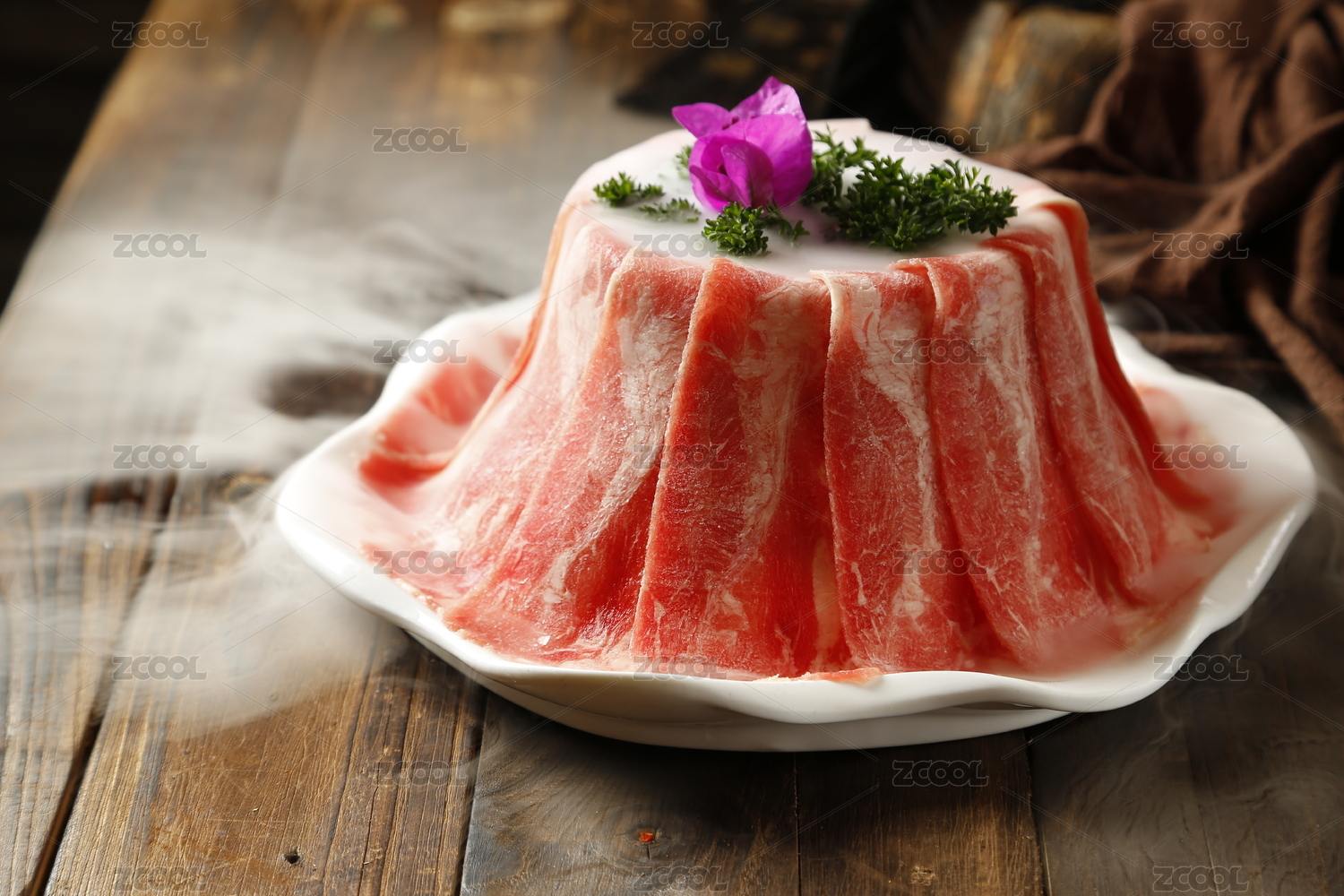 放在盤子中的成都火鍋燙菜肥牛