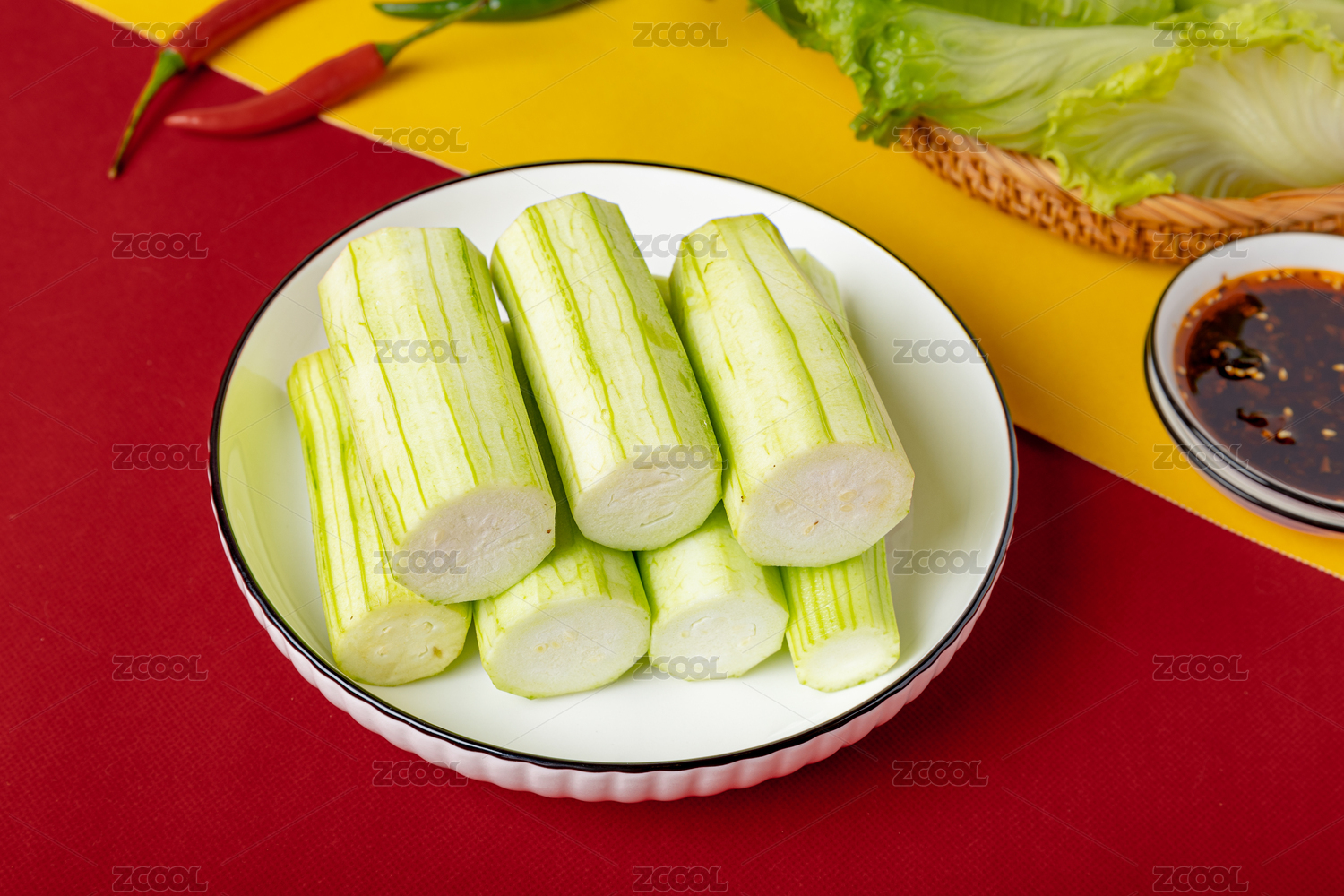 放在盤子中的成都火鍋燙菜萵筍