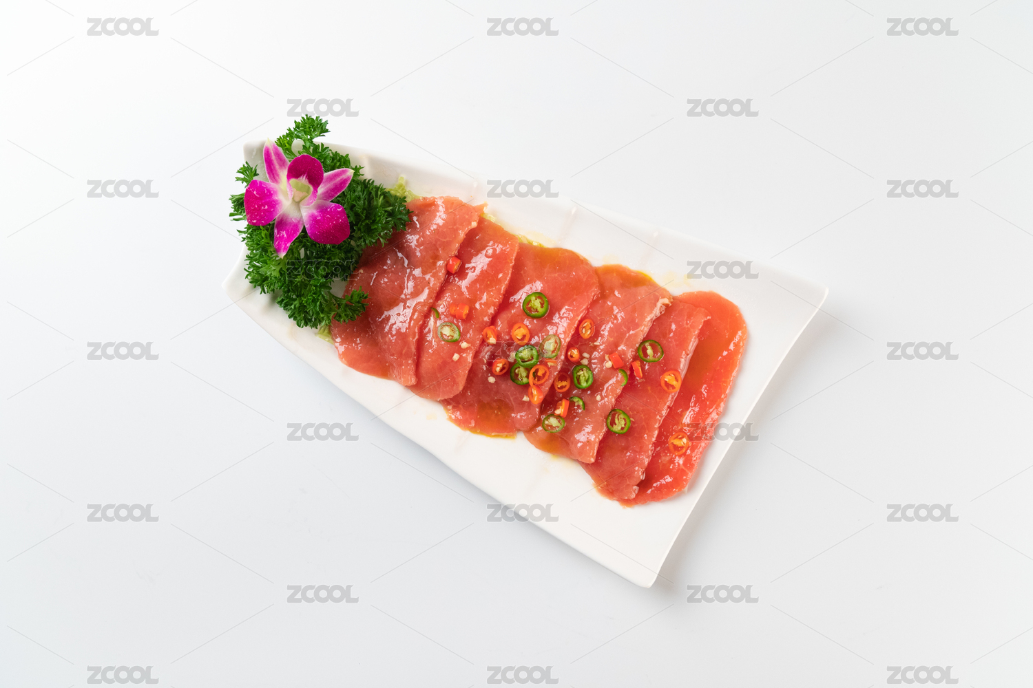 放在盤子里的火鍋燙菜鮮椒嫩牛肉擺盤