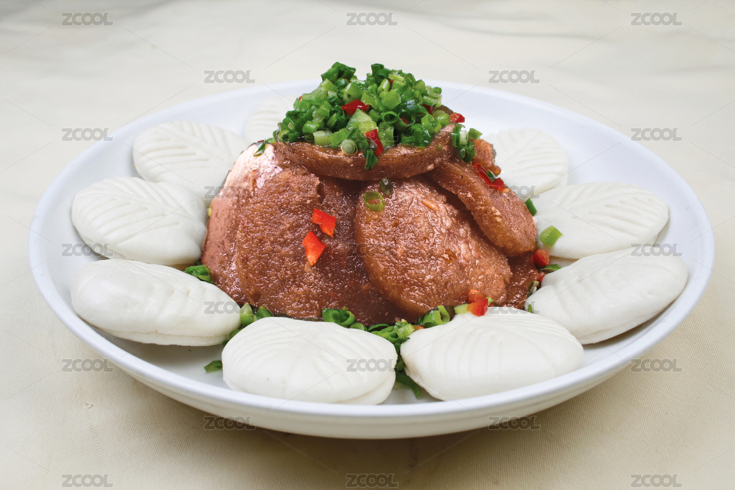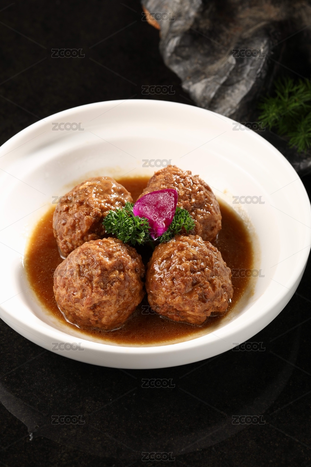 裝在白色盤(pán)子里的四喜丸子滄州鐵獅子頭