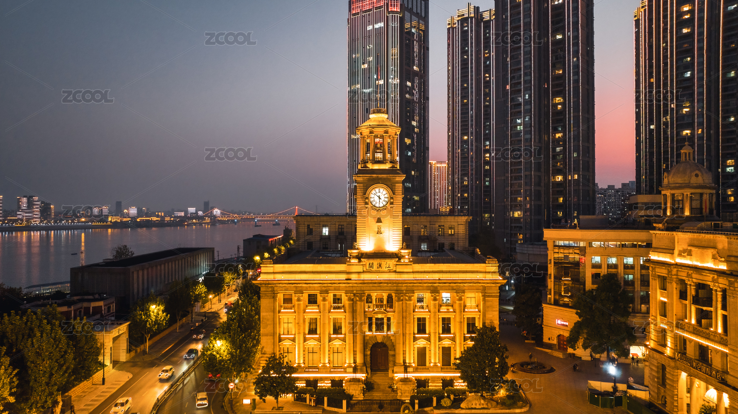 武漢漢口江漢關(guān)夜景