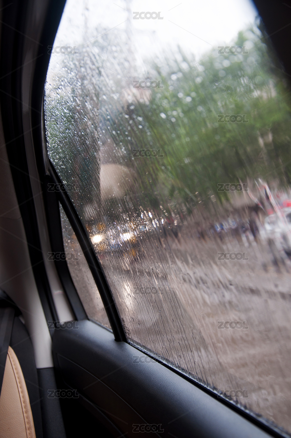 下雨天汽車的左后窗局部特寫