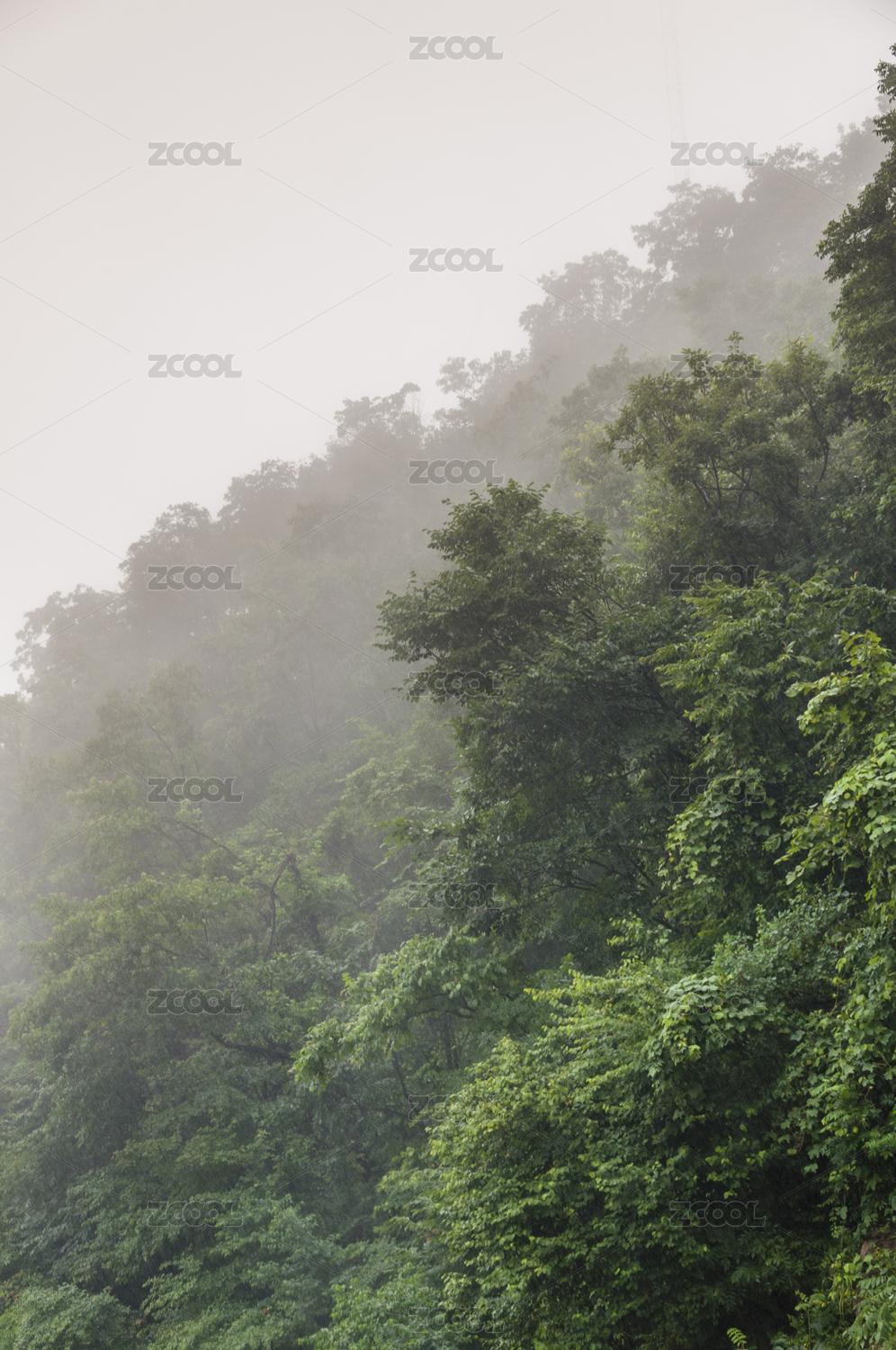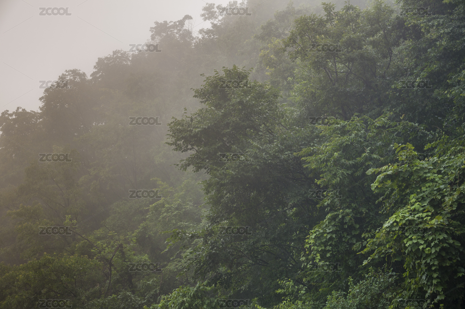 陰雨天氣中茂密的樹林局部