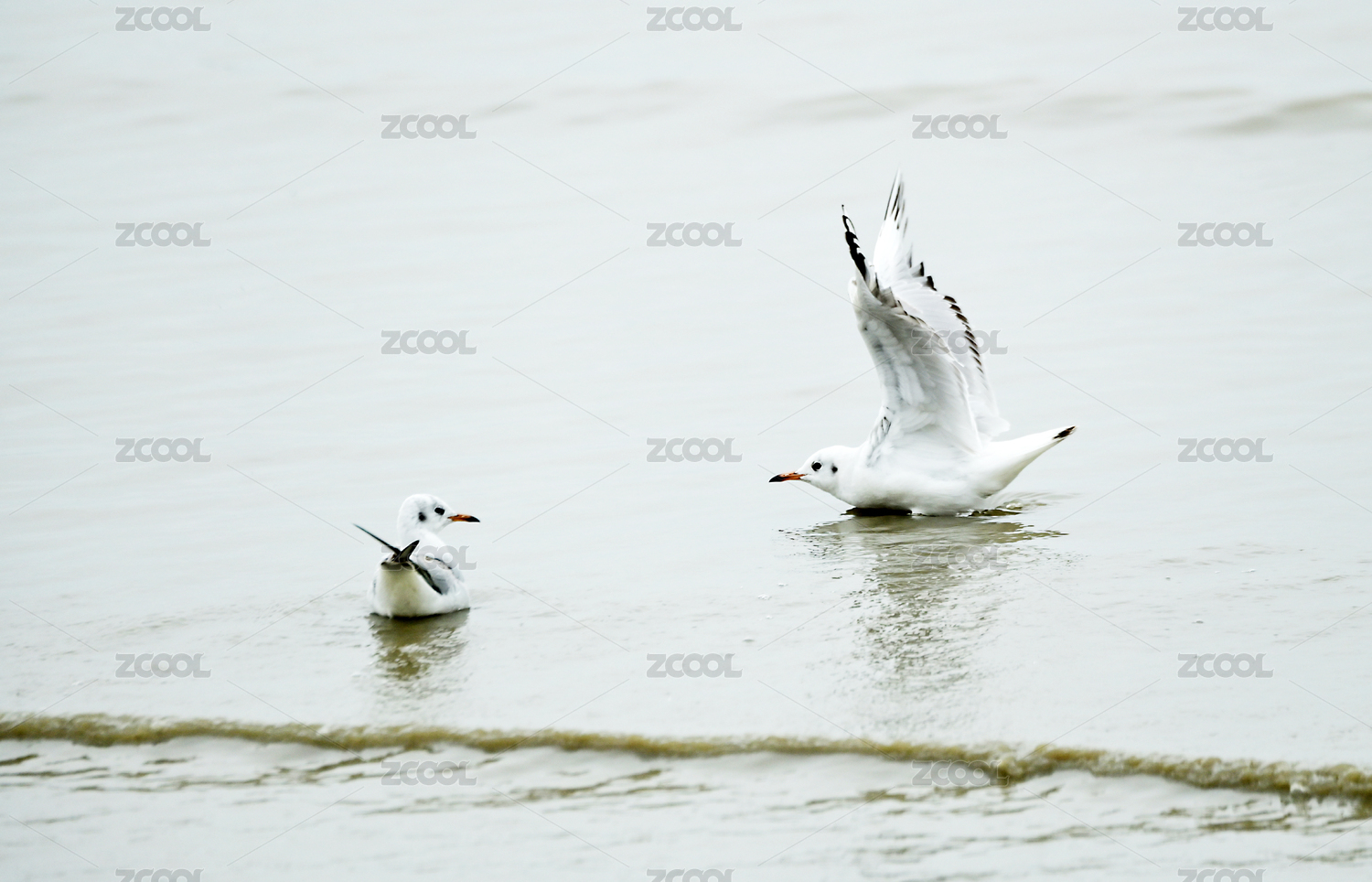 深圳灣海鷗在水中自由翱翔