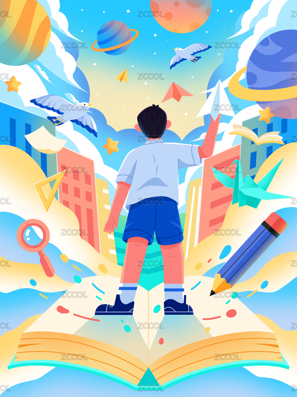世界讀書日男孩書籍知識宇宙翱翔