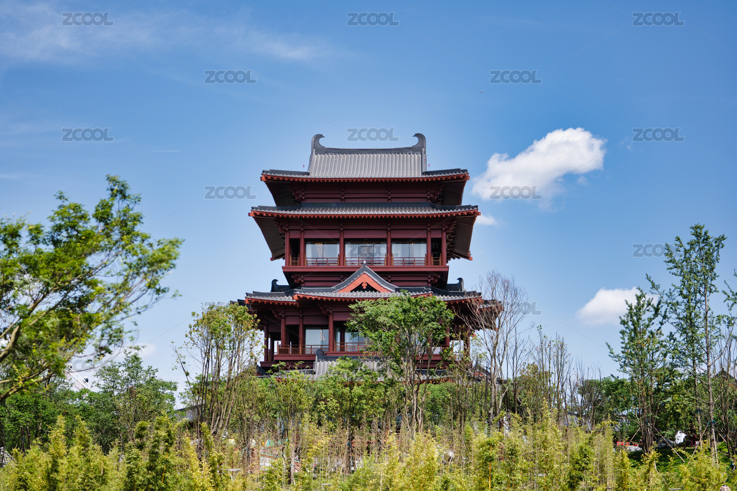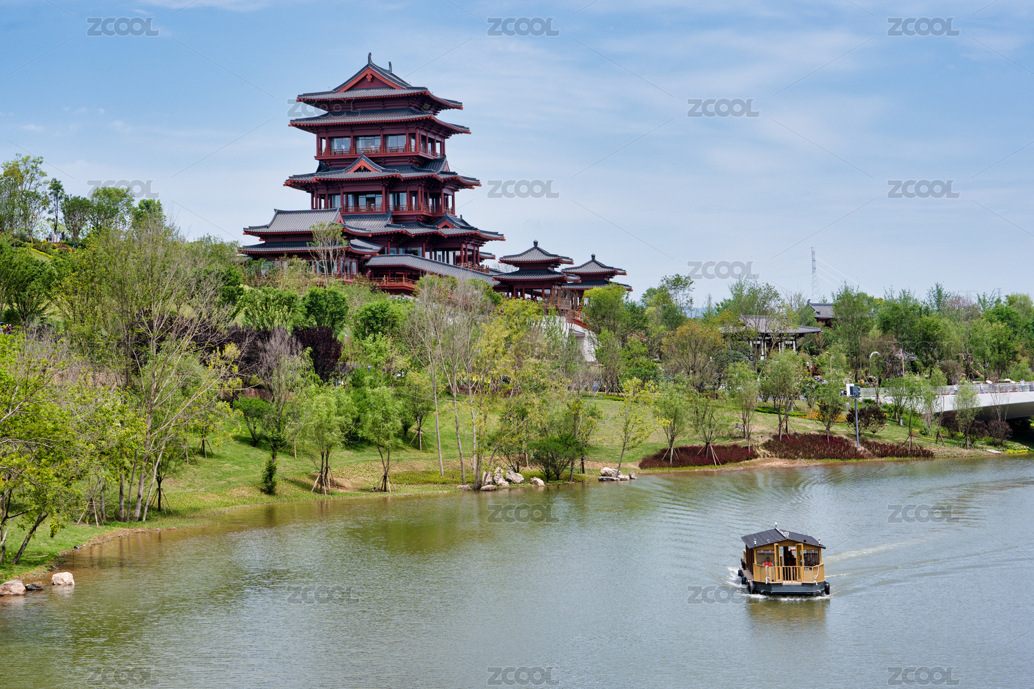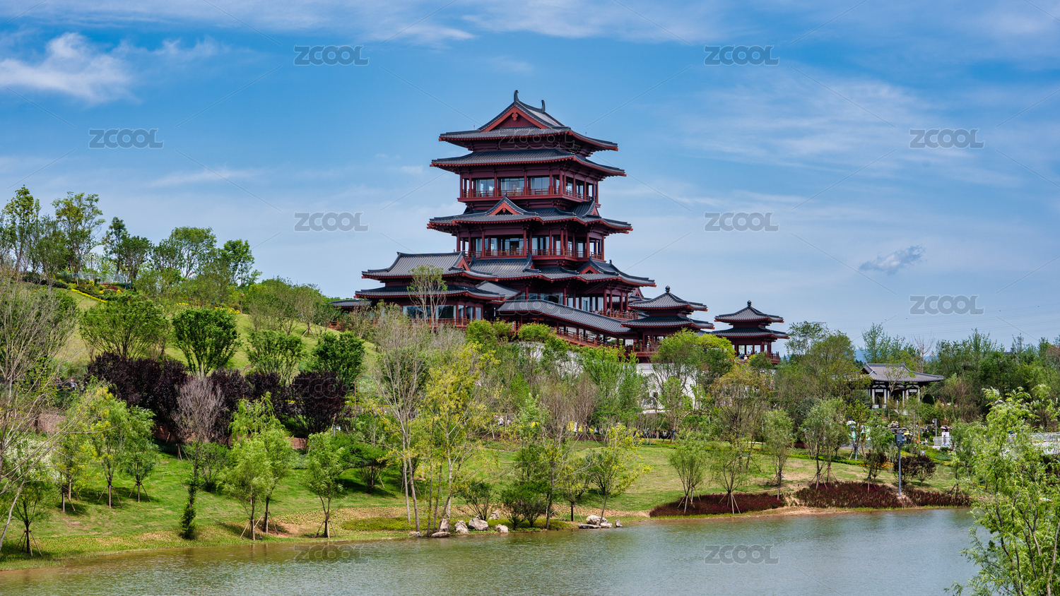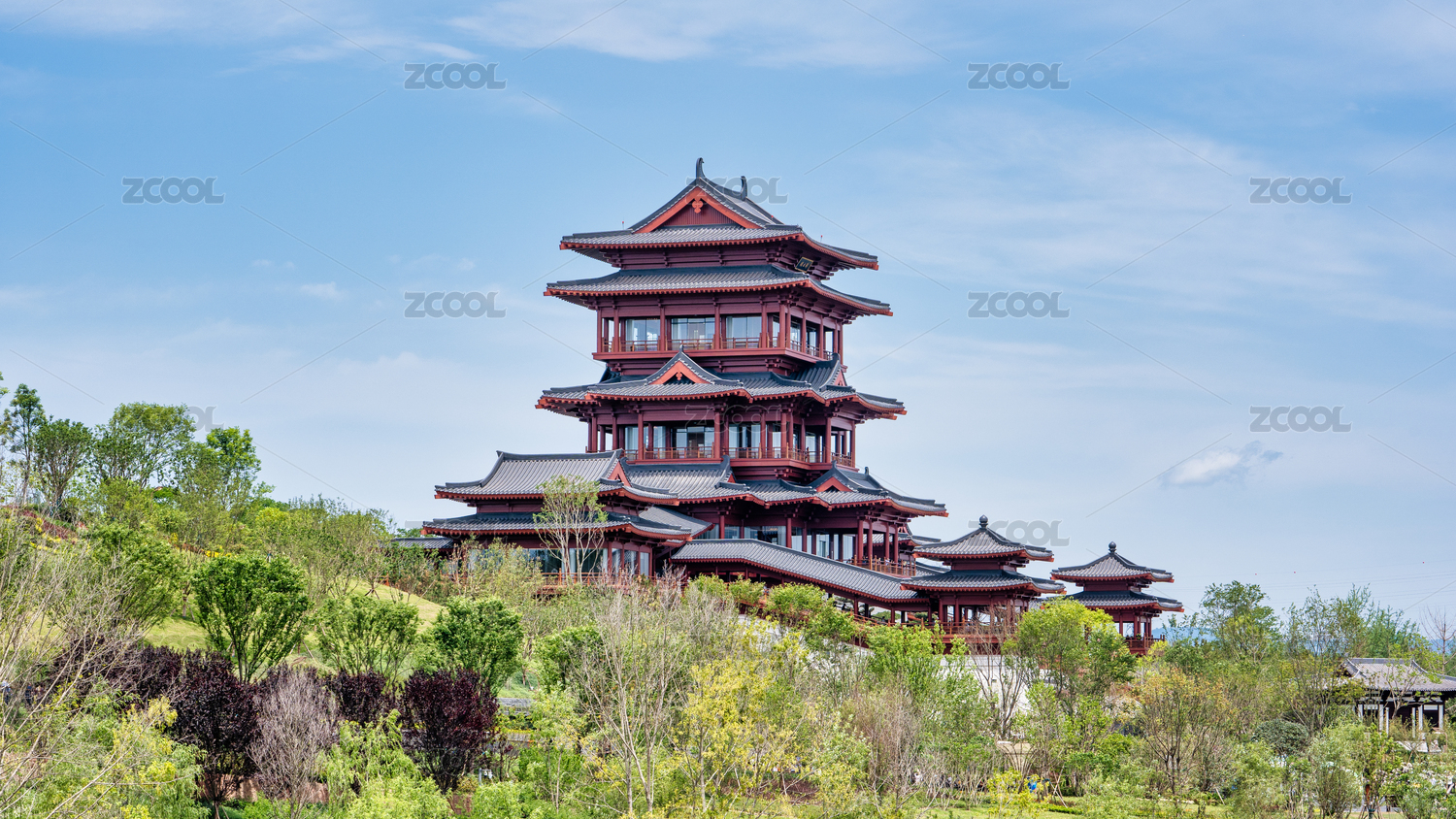成都東部新區(qū)世園會錦云樓夕陽晚霞