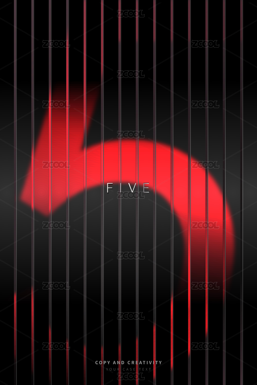 黑色背景紅色條紋光影質(zhì)感數(shù)字5創(chuàng)意海報