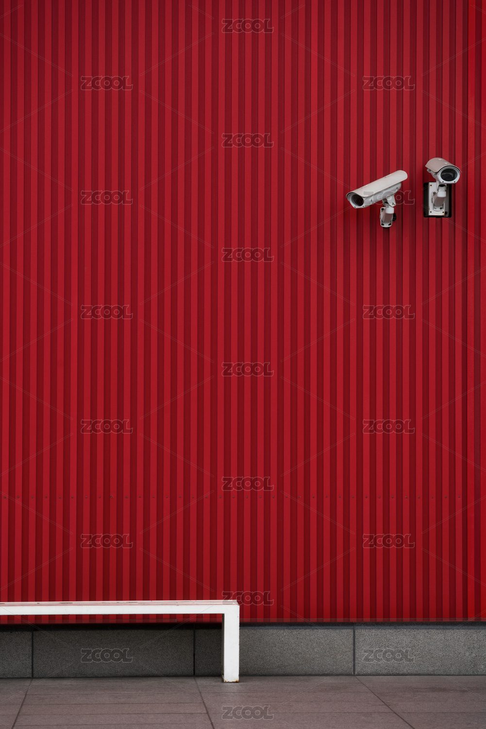 紅色豎紋背景中的攝像和凳子建筑空間照