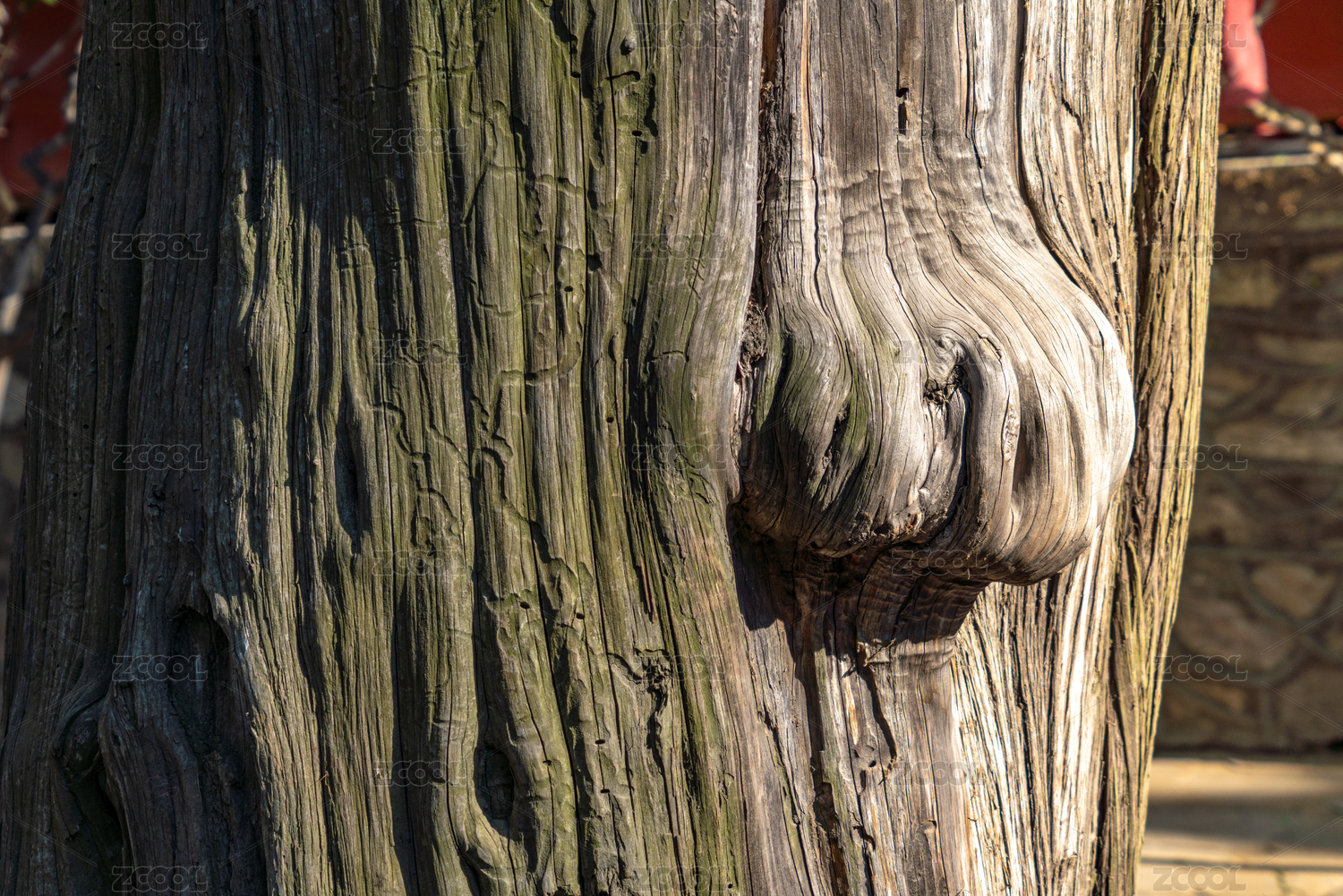 長苔蘚的槐樹樹皮植物紋理素材