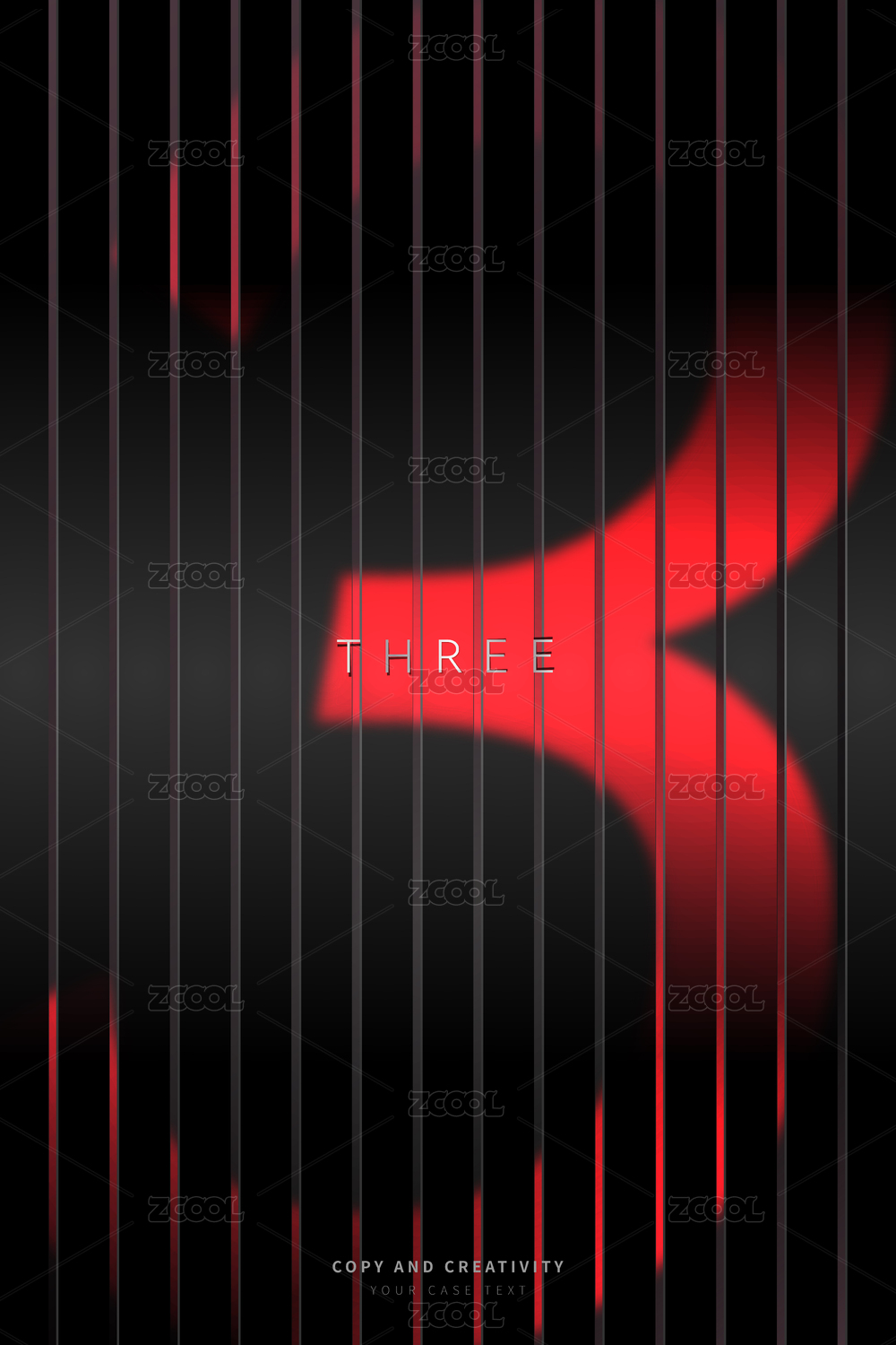 黑色背景紅色條紋光影質(zhì)感數(shù)字3創(chuàng)意海報