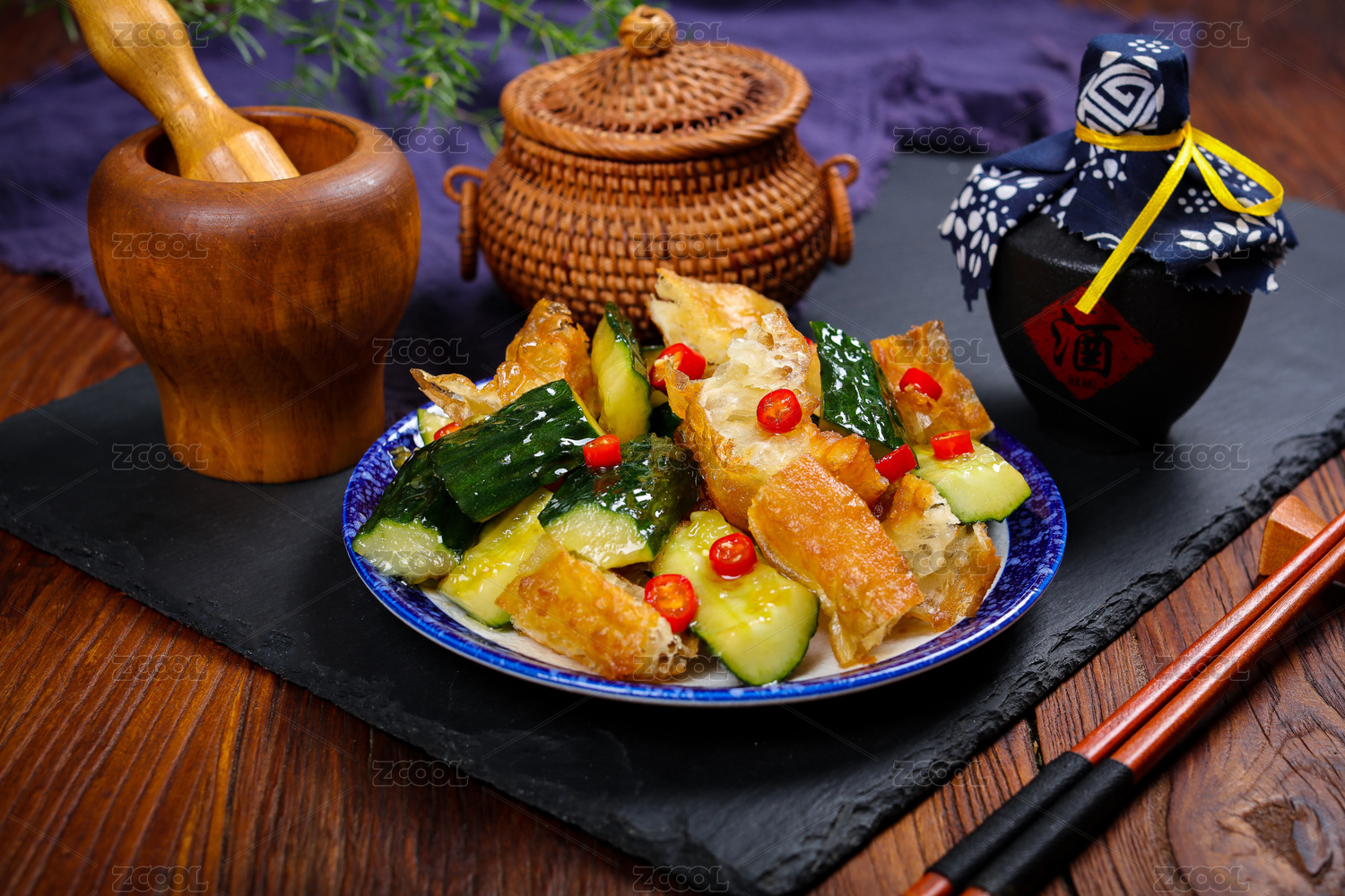 特色涼菜美食黃瓜拌油條