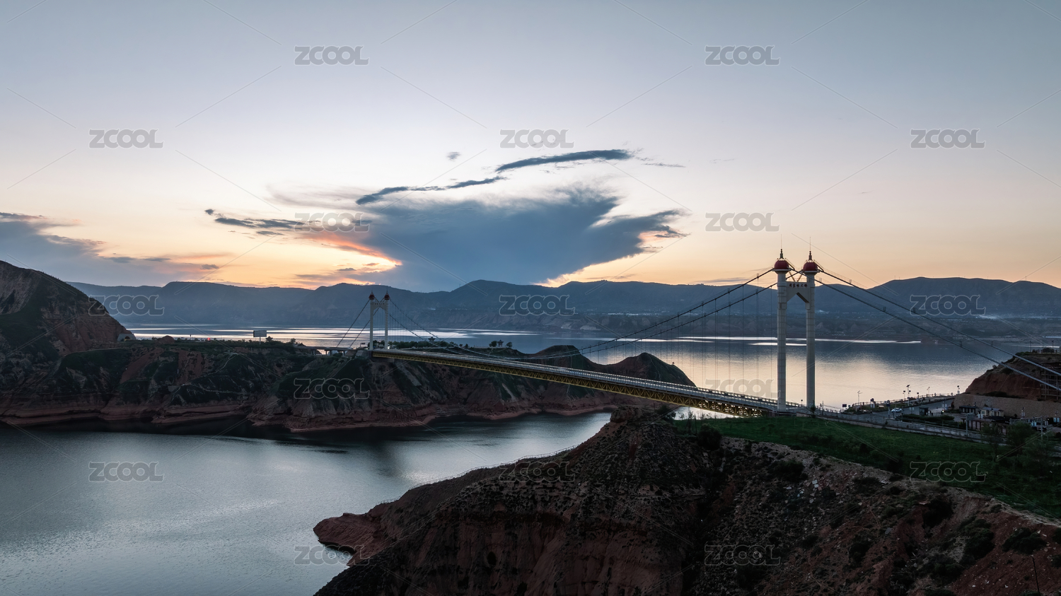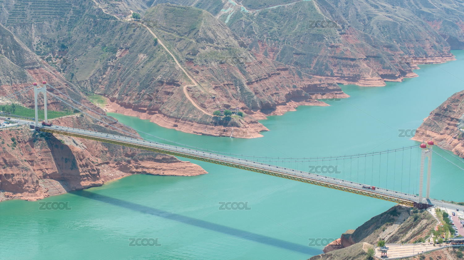 中國甘肅臨夏永靖黃河劉家峽水庫大橋風(fēng)光