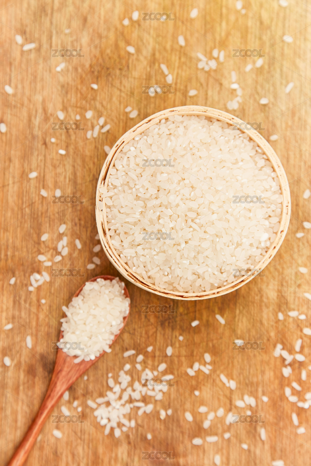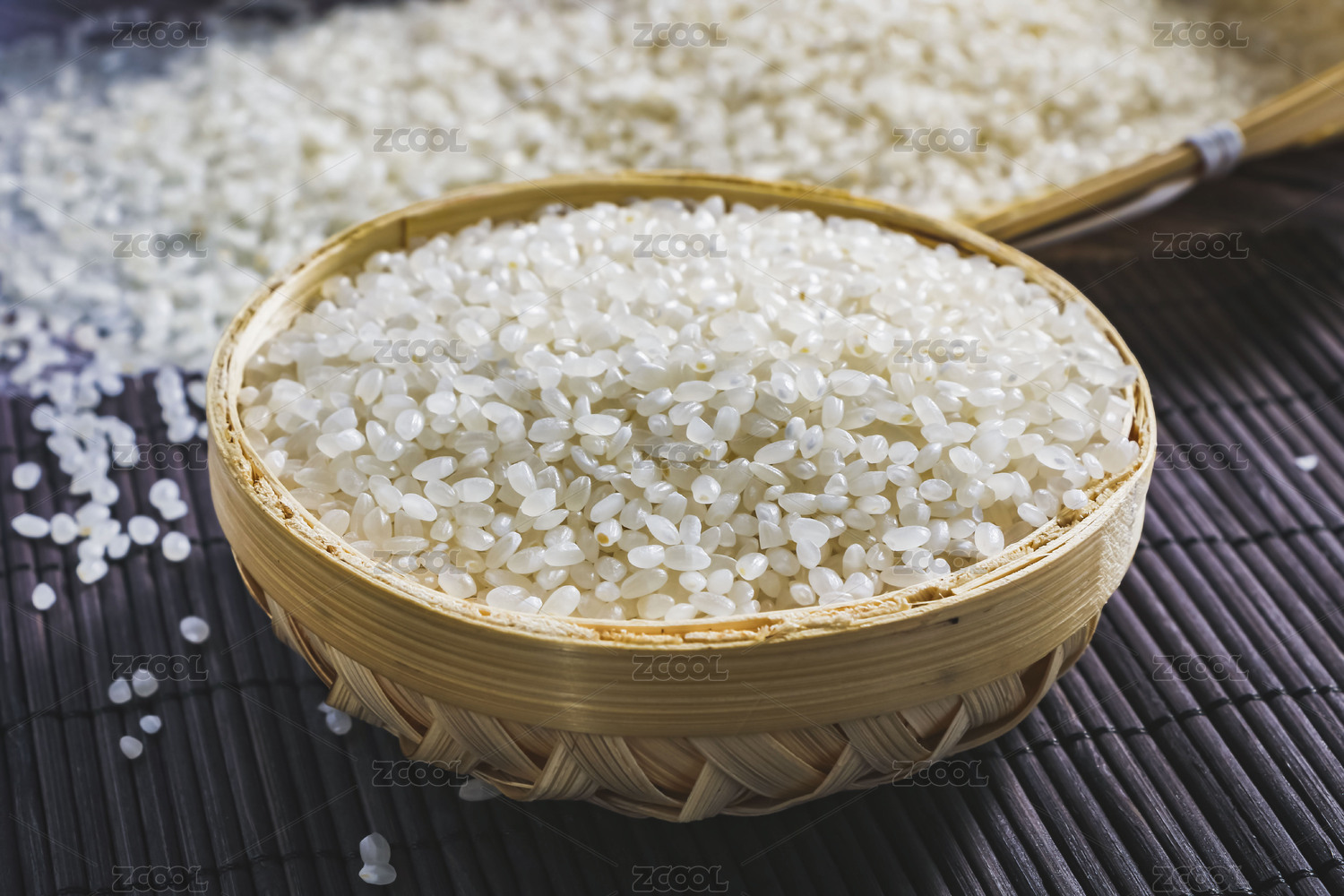 竹筐里的一堆大米