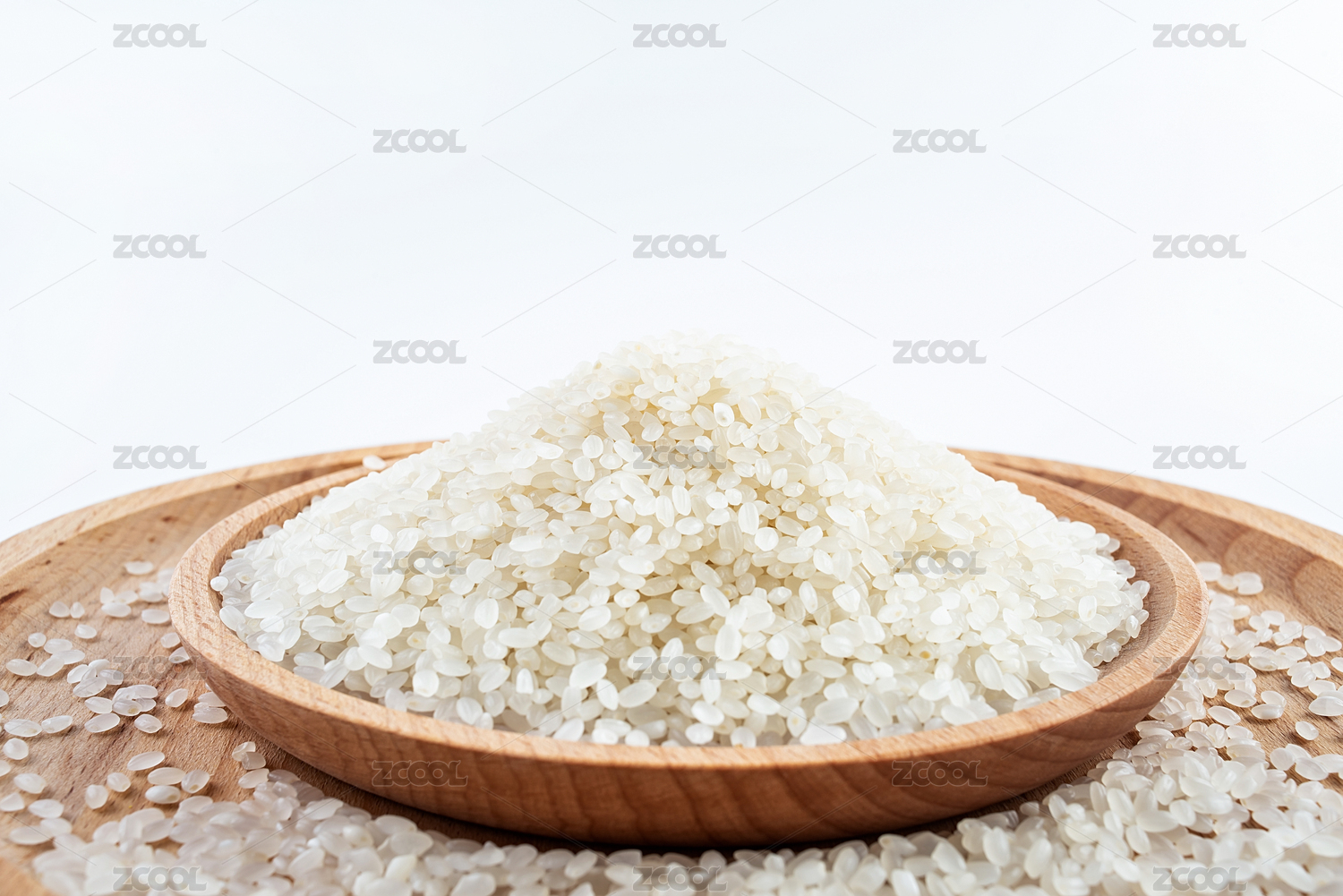 白背景上一碟中國東北大米圓粒米