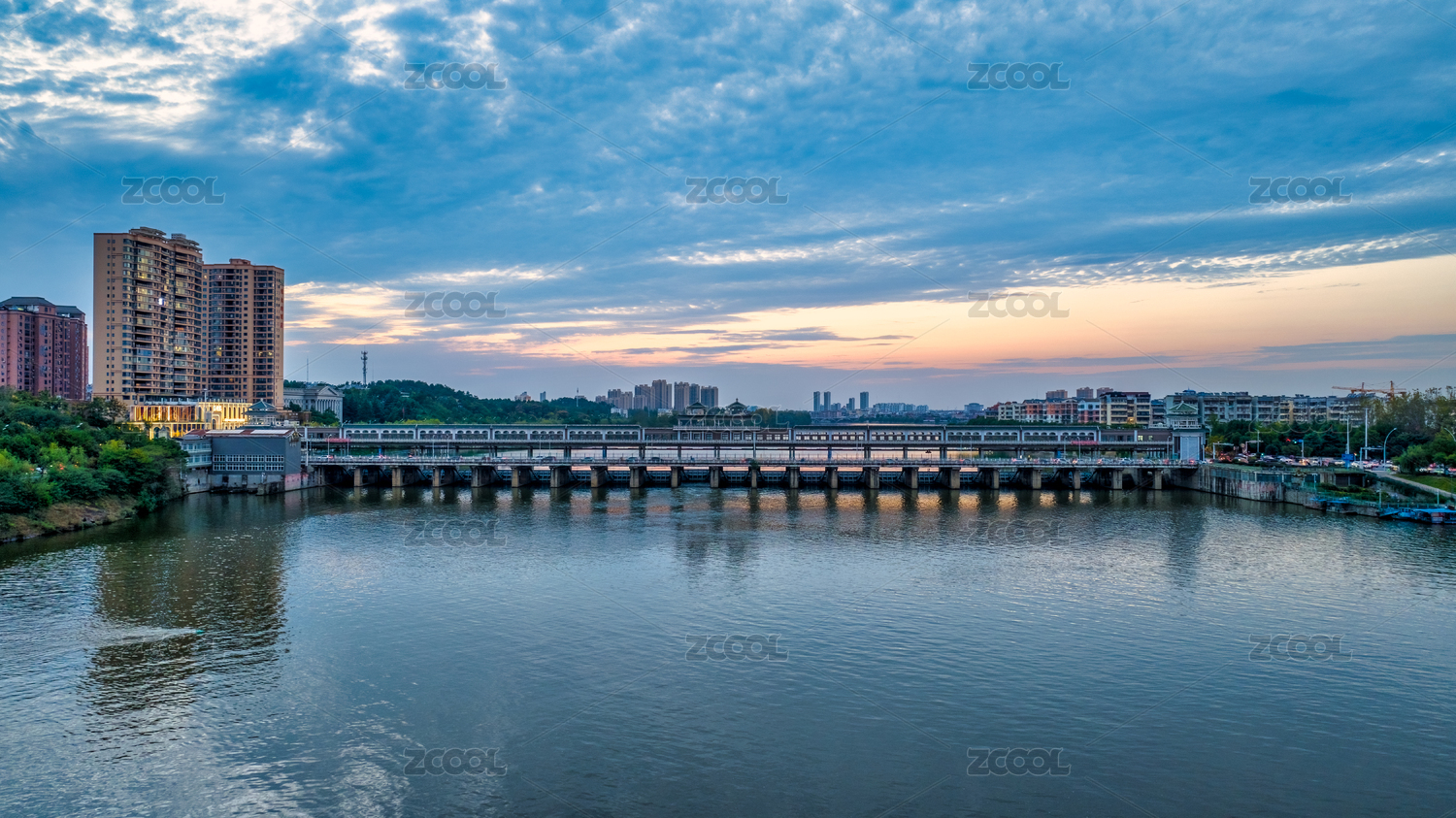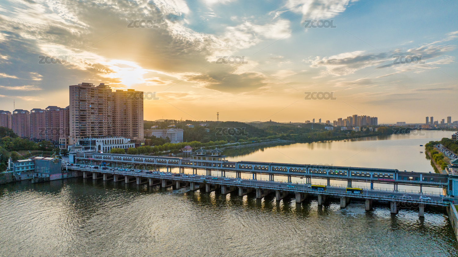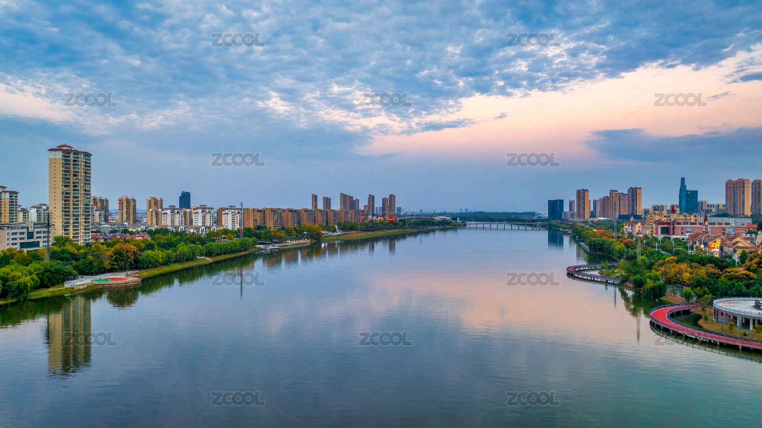 湖北隨州市渦水河府河邊萬達(dá)廣場和體育館