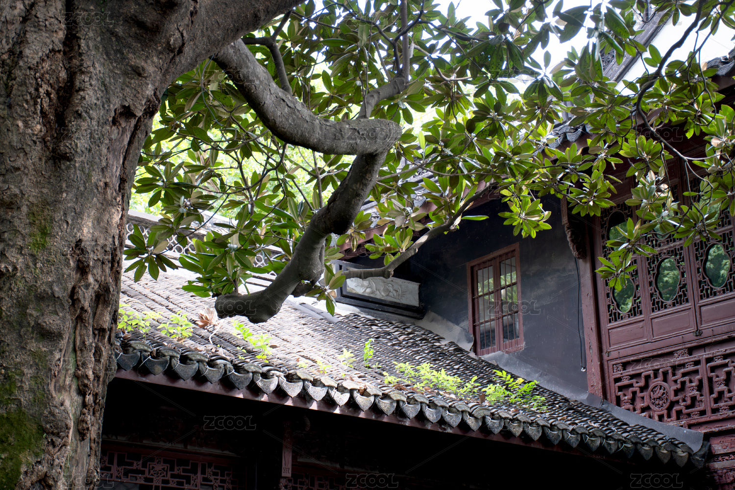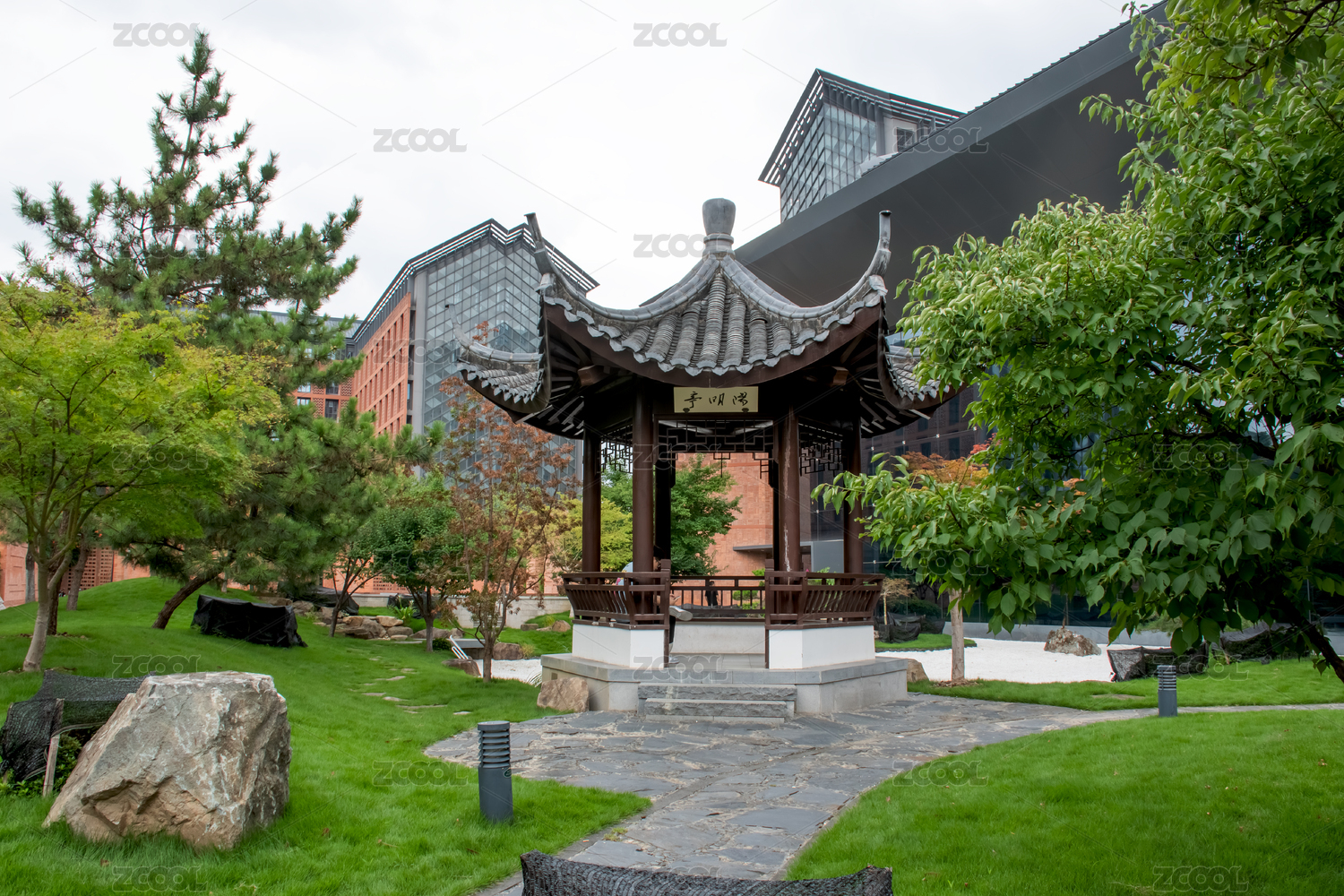 杭州城市園林古建背景圖