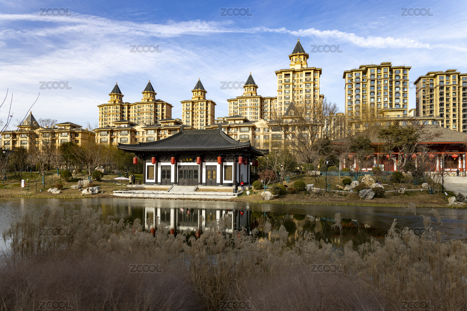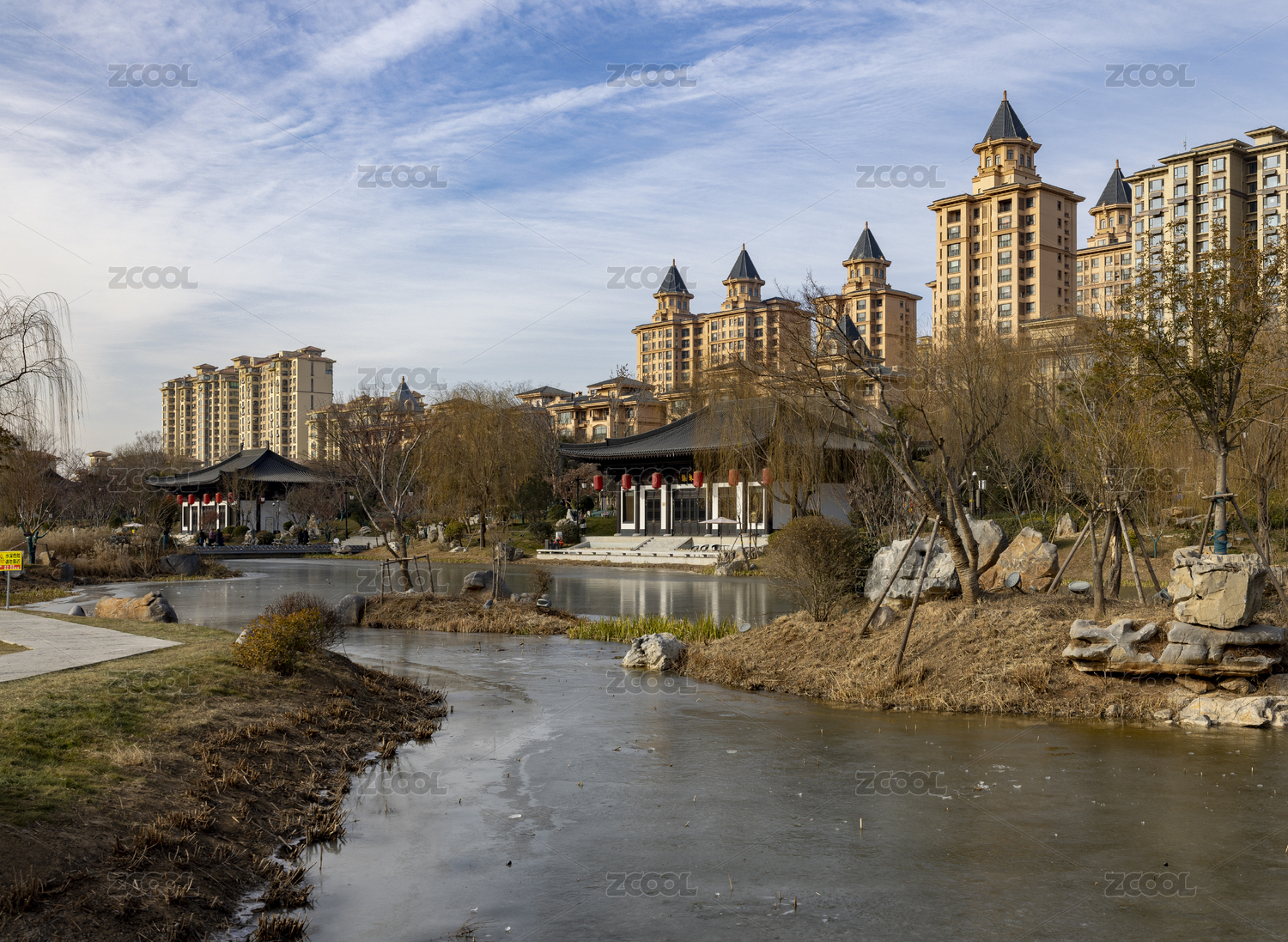 城市園林冬景如畫
