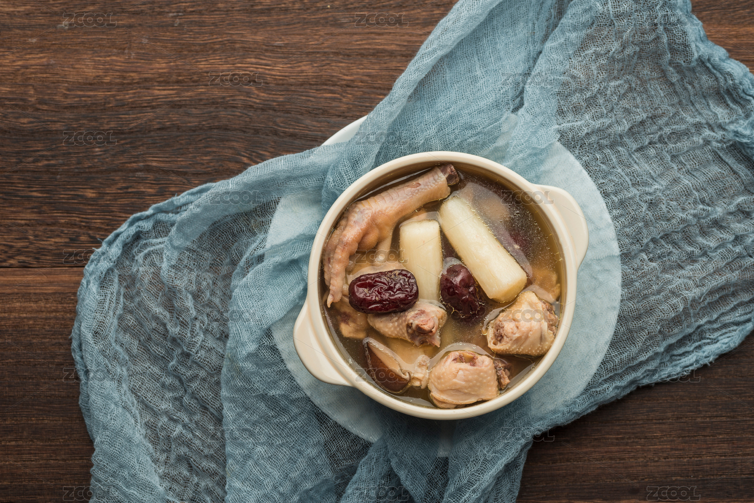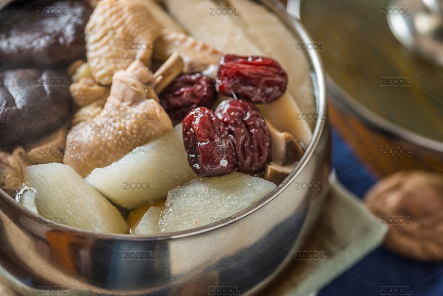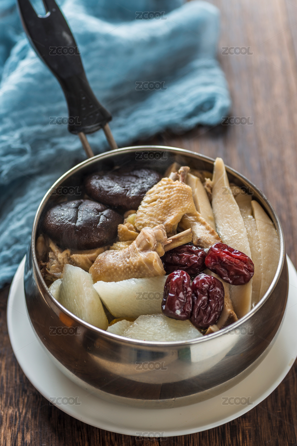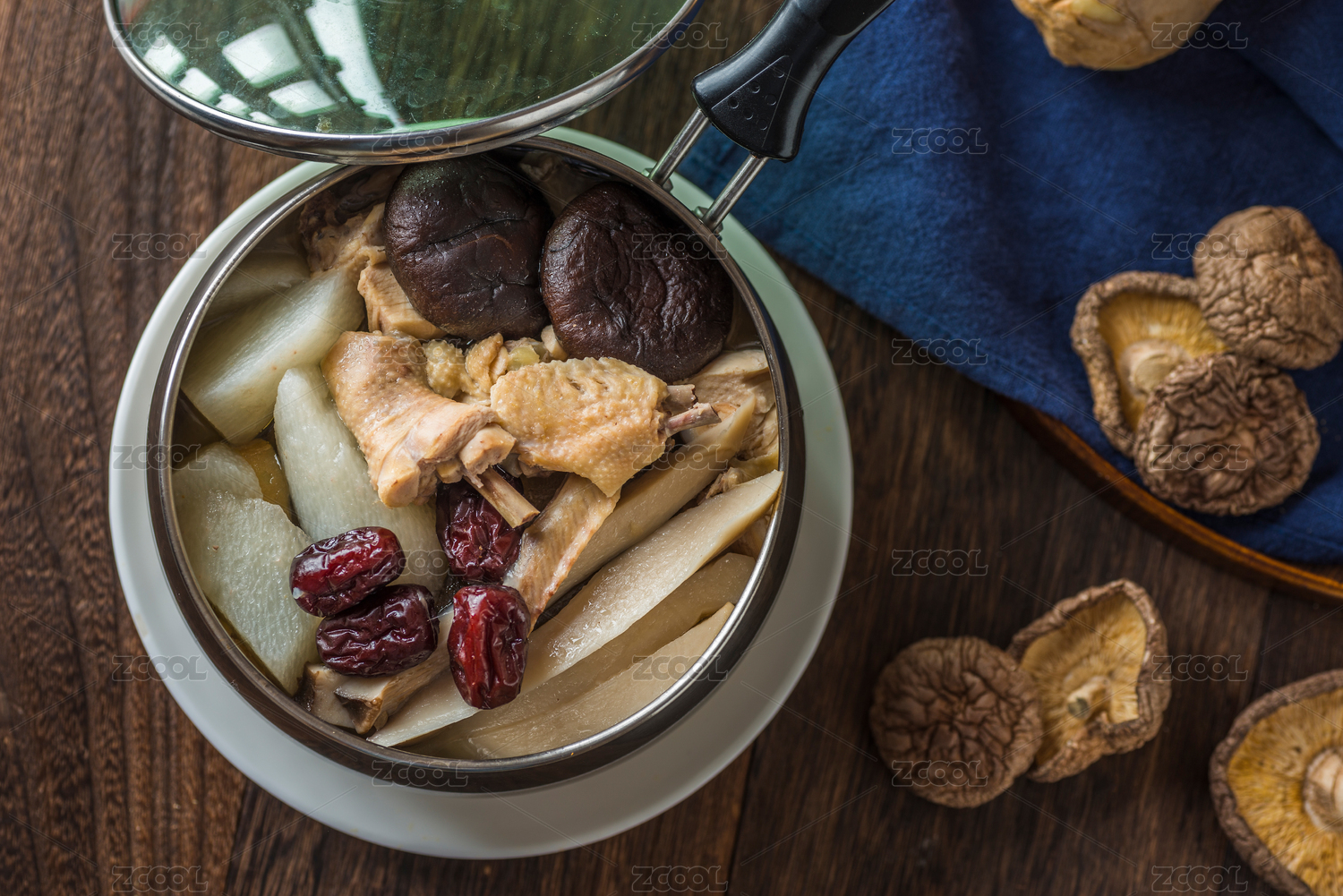 雪平鍋里的香菇山藥燉土雞